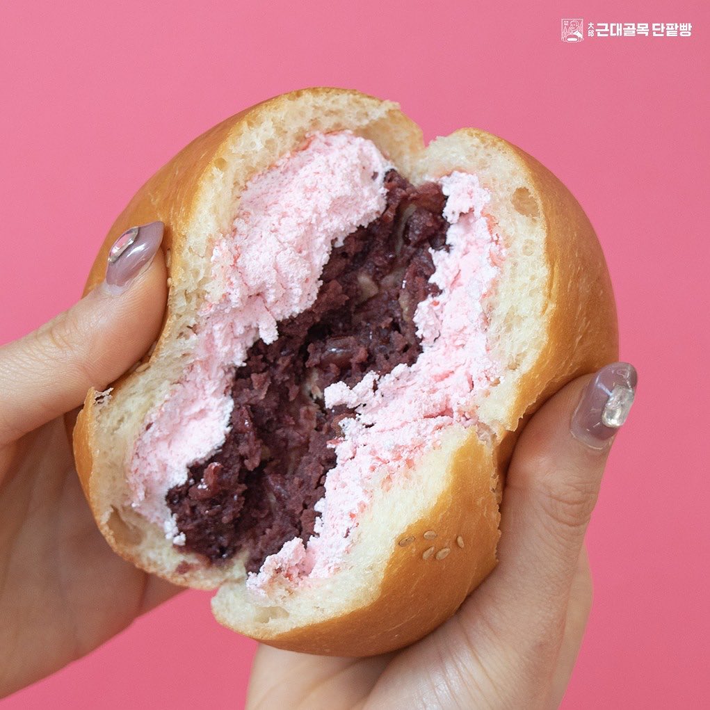 Daeggubang, or Geundae Golmok Danpatppang, specialises in whipped cream-filled buns in flavours like strawberry and green tea layered with a generous amount of sweet red bean.