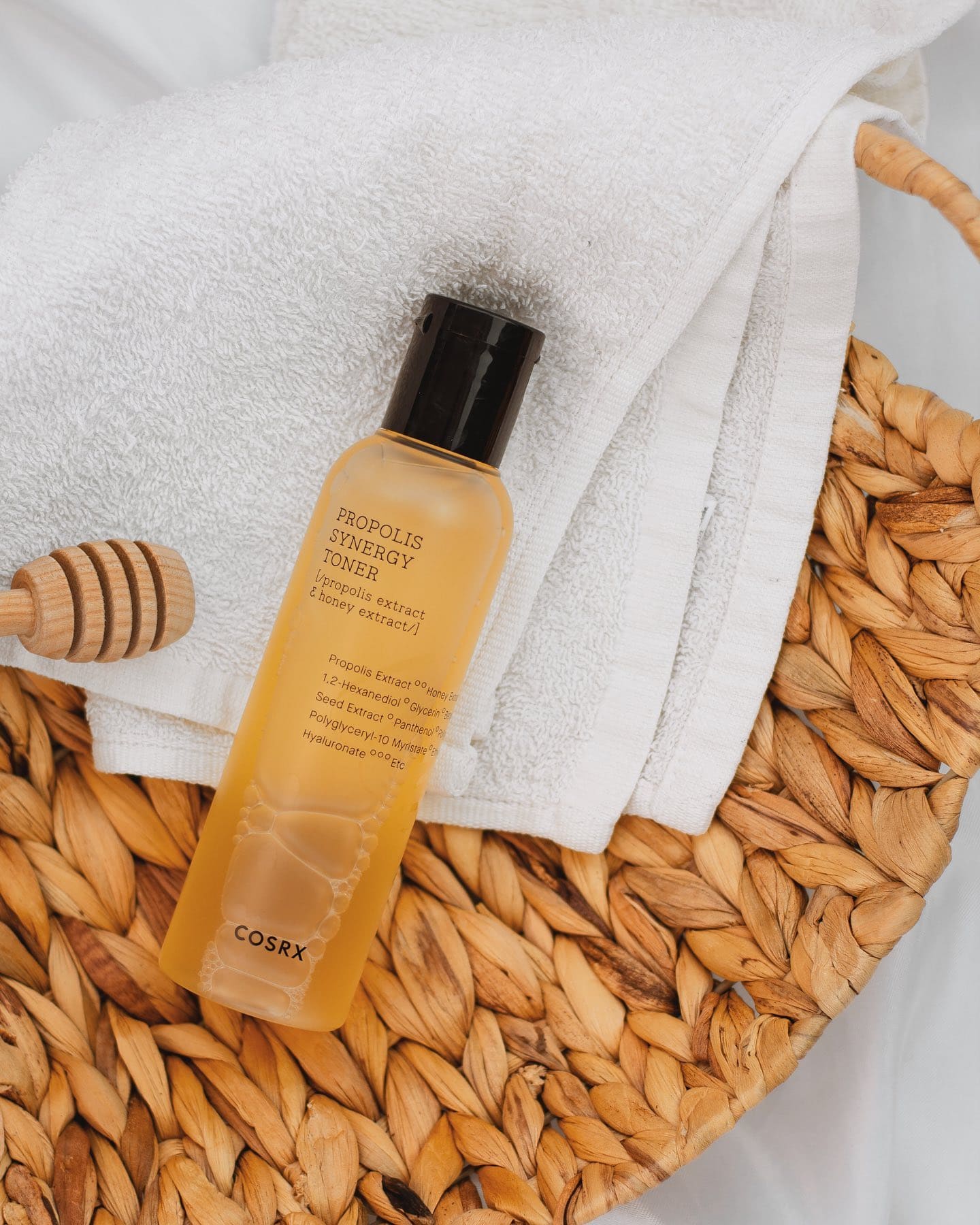 One of the most popular hydrating toners for those with sensitive, acne-prone skin is the Full Fit Propolis Synergy Toner — your skin will quite literally drink up this blend of 72.6% black bee propolis and honey extract enriched with vitamin B.