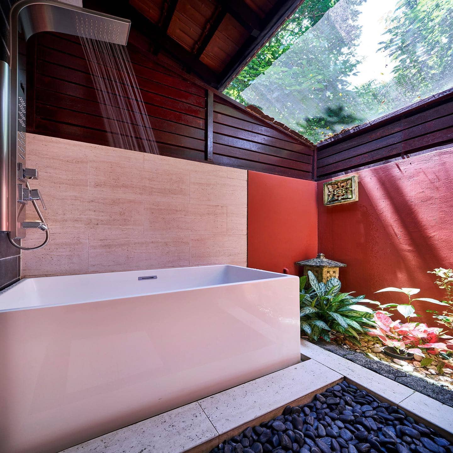There are four different rooms for you to choose from. The Standard Room and the Superior Room both come with a Queen-sized bed that is great for two adults and one kid. What sets the Superior Room apart is the additional private outdoor shower.