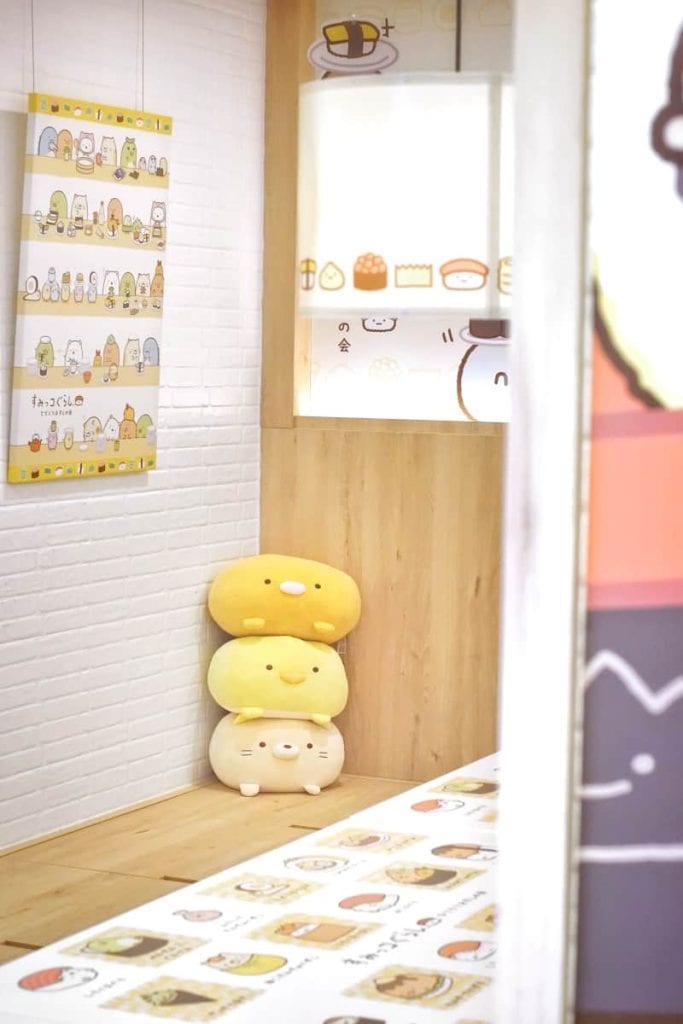 Kumoya has transformed the space by plastering cute wall decals and populating it with adorable Sumikkogurashi plushies.