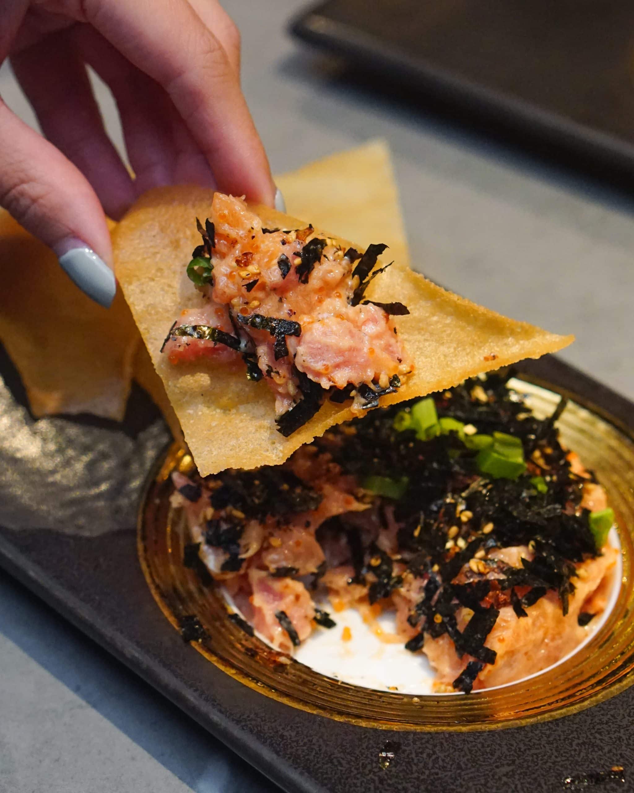 If you don’t take beef, the Salmon Tuna Tartare (S$18), a crowd-pleasing combination of minced tuna, salmon, tobiko, and spicy mayo, dressed generously with furikake, nori, and spring onion, will more than suffice.