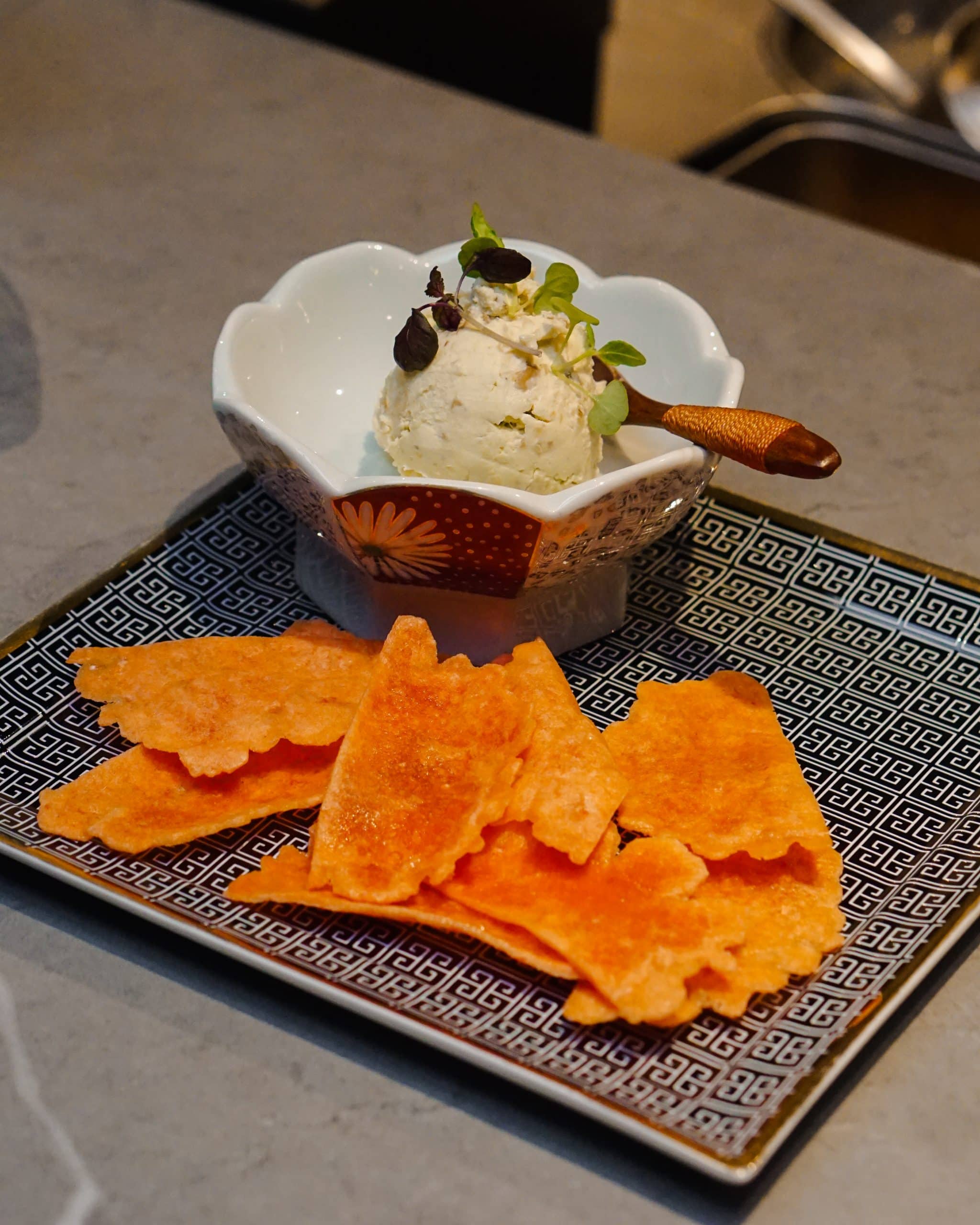 Here’s another dip-and-crackers combo that’s on the more unique side, the Nama Ebi Senbei with Cheese (S$15), comprising wasabi and smoked radish cream cheese paired with Japanese prawn crackers.