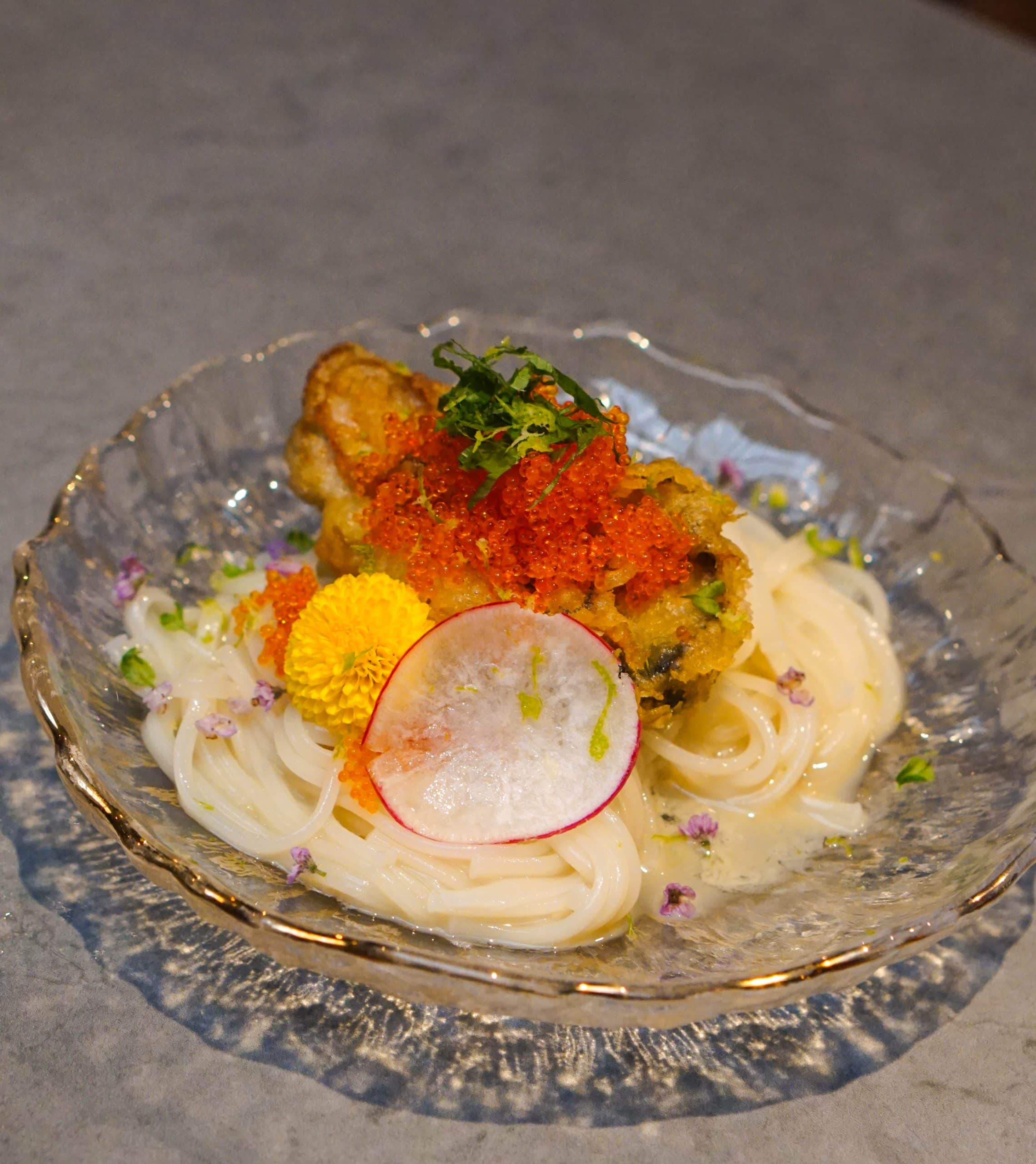 Other dishes that celebrate oysters are the grilled Butter Yaki Oysters (S$16), Kaki Furai (breaded oysters, S$19), and locally-inspired Oyster Omelette (S$15), but we went for the Signature Oyster Somen (S$19), comprising oyster tempura perched atop silky Hiroshima noodles and oyster jus.