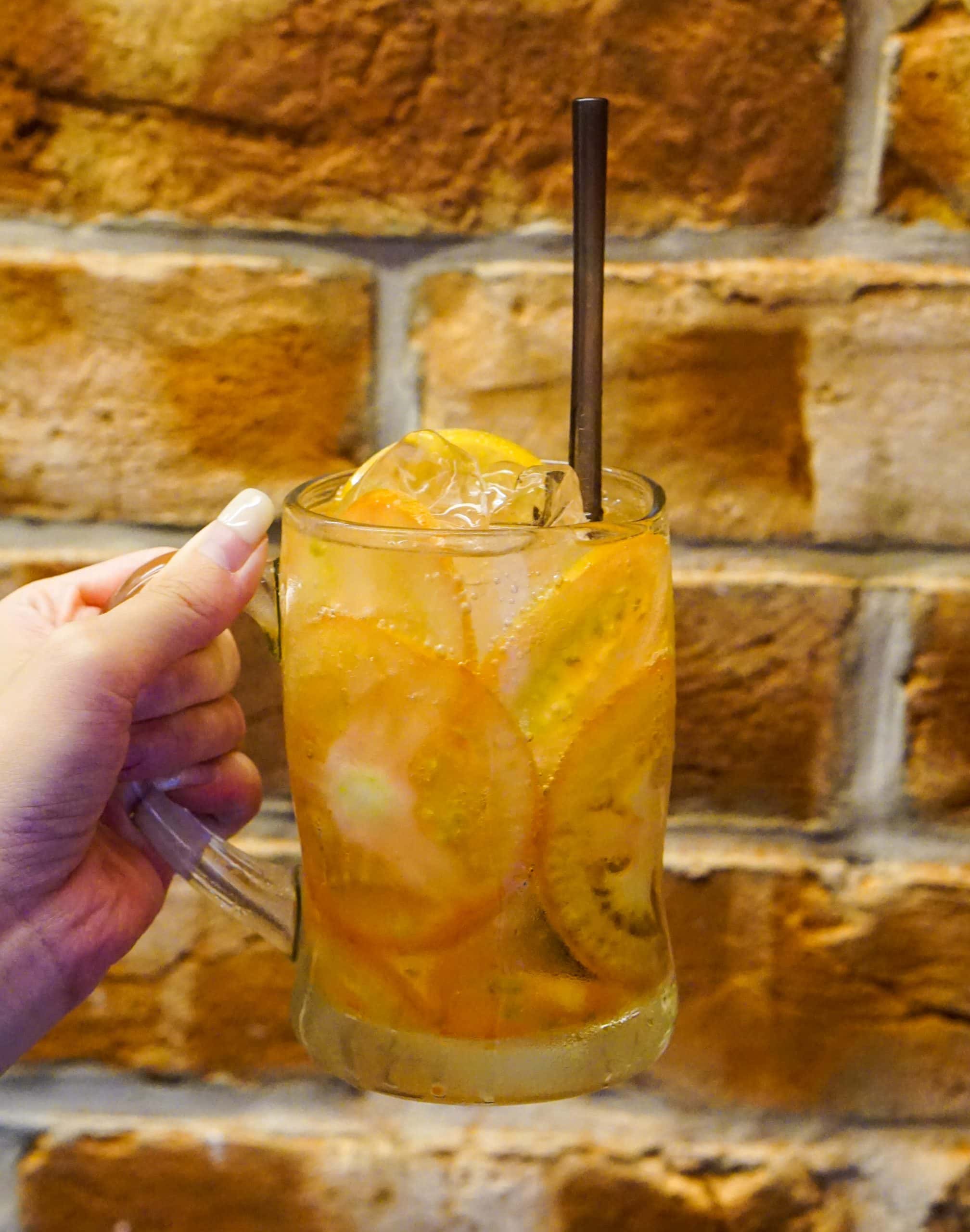 Here’s a heads-up: the tomato cocktail (a first for me), a combination of shochu, syrup, soda, and plain ol’ slices of raw tomato, is an extremely acquired taste.