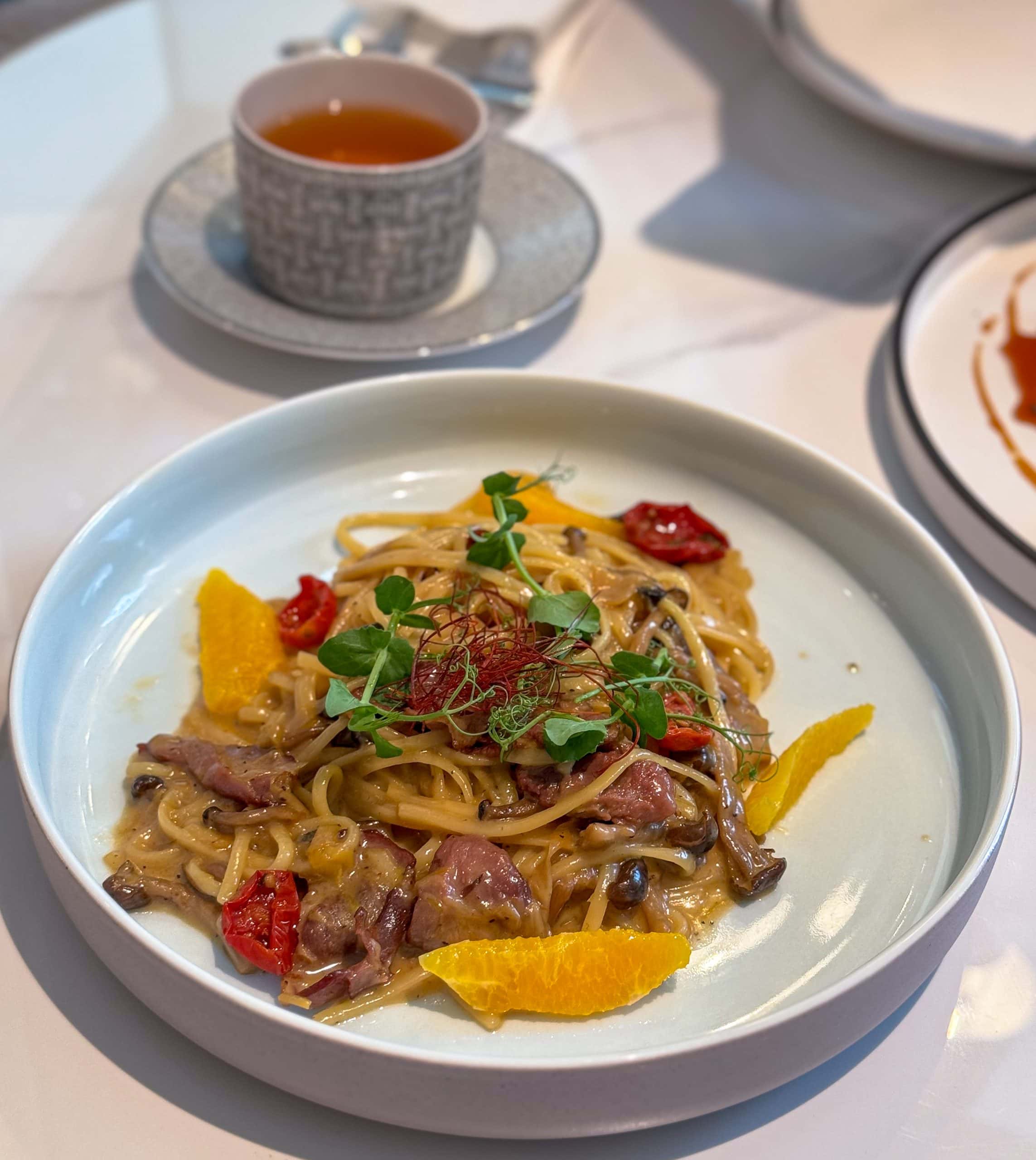 Those who like heavier, bolder flavours can go for either the Smoked Duck Pasta (U.P. S$32), which is balanced out by the addition of yuzu cream and oranges, or the quintessentially French Beef Cheek (+S$10).