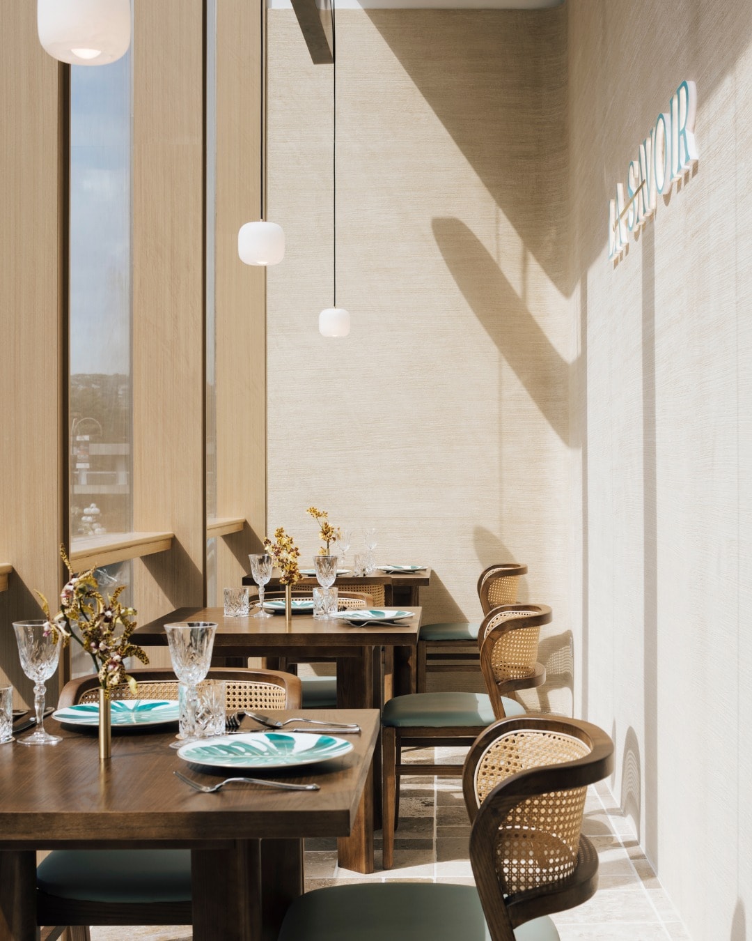 Think of it as a modern interpretation of a classic French brassiere, with interiors dressed in rattan furniture, soft lighting, and pops of Tiffany blue.