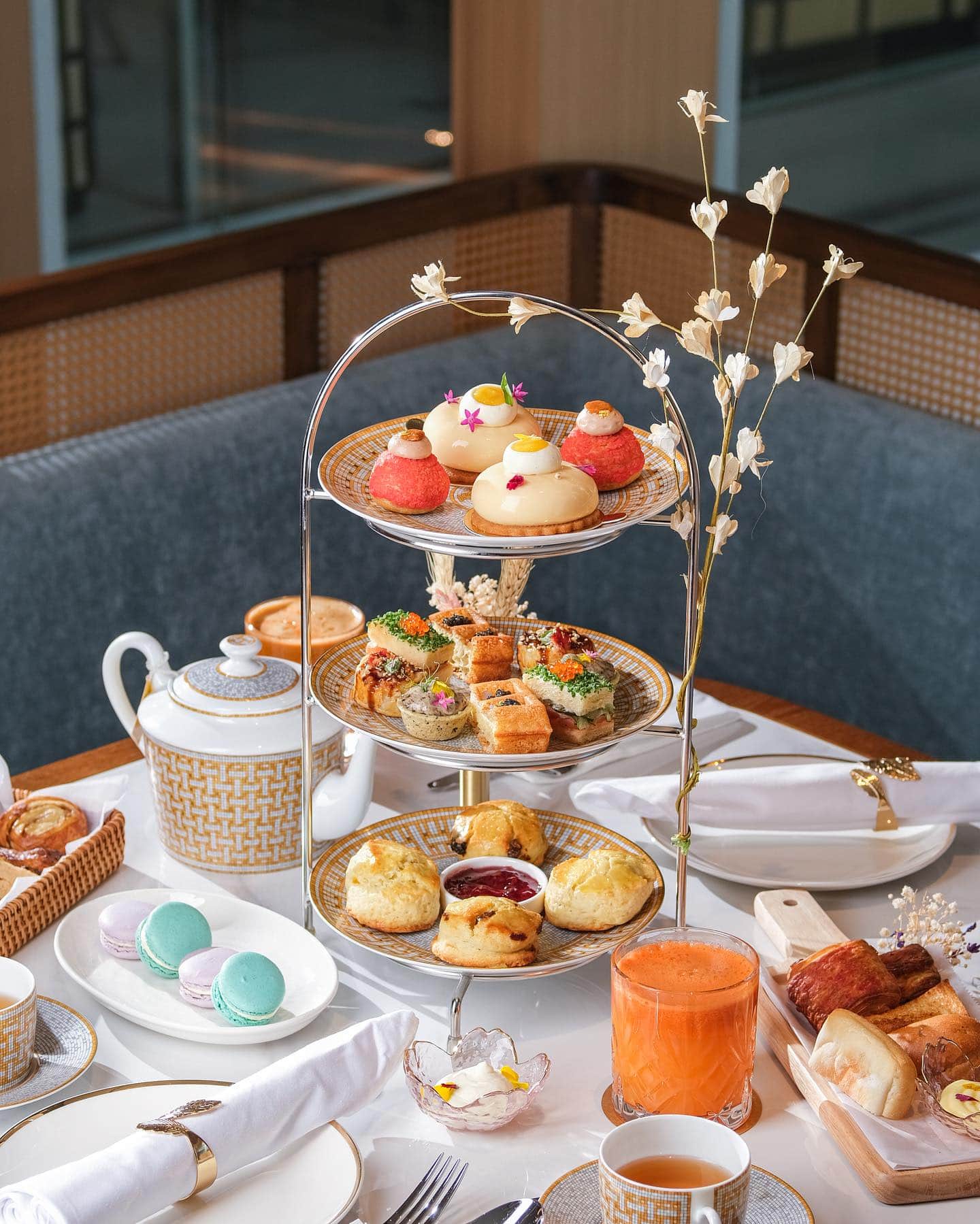 You’ll get to tuck into sweet and savoury bites such as Truffle Mushroom Tart, Karaage Waffle with white sturgeon caviar, Matcha Brownies, and a selection of Petit Fours, accompanied by Scones and your choice of tea or coffee.