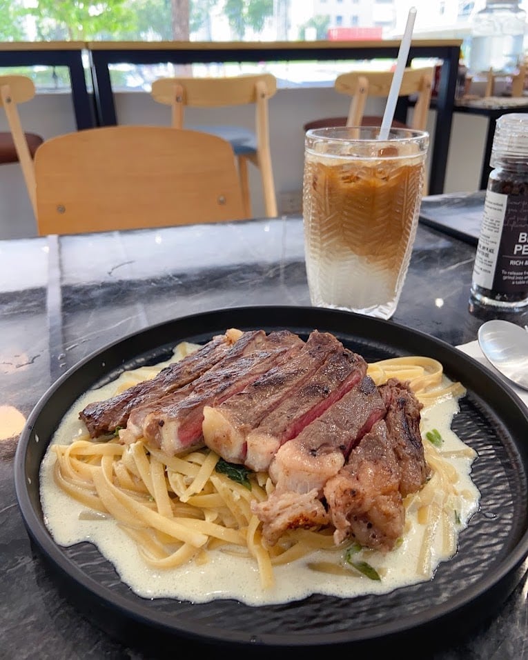 Expect menu items like Mushroom Cheese Croissant (S$9.90), Descendants of the Sun (stir-fried udon, S$10.90), Pasta Fish Alaska (S$11.90), and more. Plus, there’s even a ribeye steak and pasta option for just S$14.90 — what a steal! The best part? No GST and service charge.