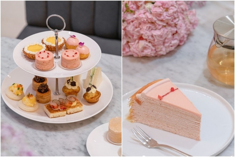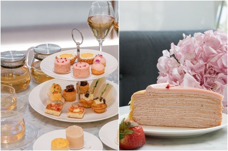 The Spring Afternoon Tea Set (S$60 per person) comes with a two-tier set filled with seasonal specials, sweet treats and savoury delights including mini Sakura Berry Mille Crêpes, Truffle Cream Crab Tartlet, Pink Choux, Tarte Au Citron, Mushroom Duxelle Vol au Vents and more.