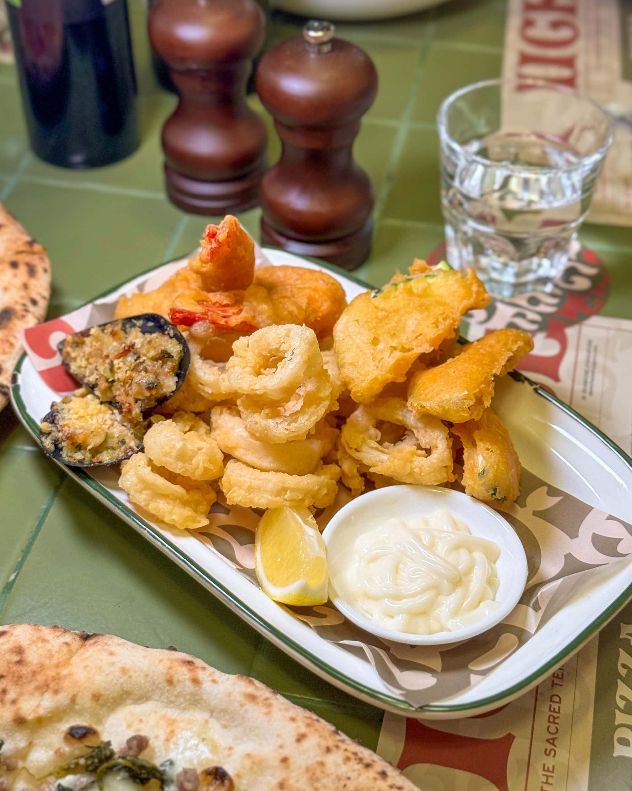 But if you prefer your seafood cooked, or in this case, fried, order the Fritto di Mare (S$26), a basket of crispy calamari, prawns, Amalfi coast fin fish, and zucchini with a side of aioli.