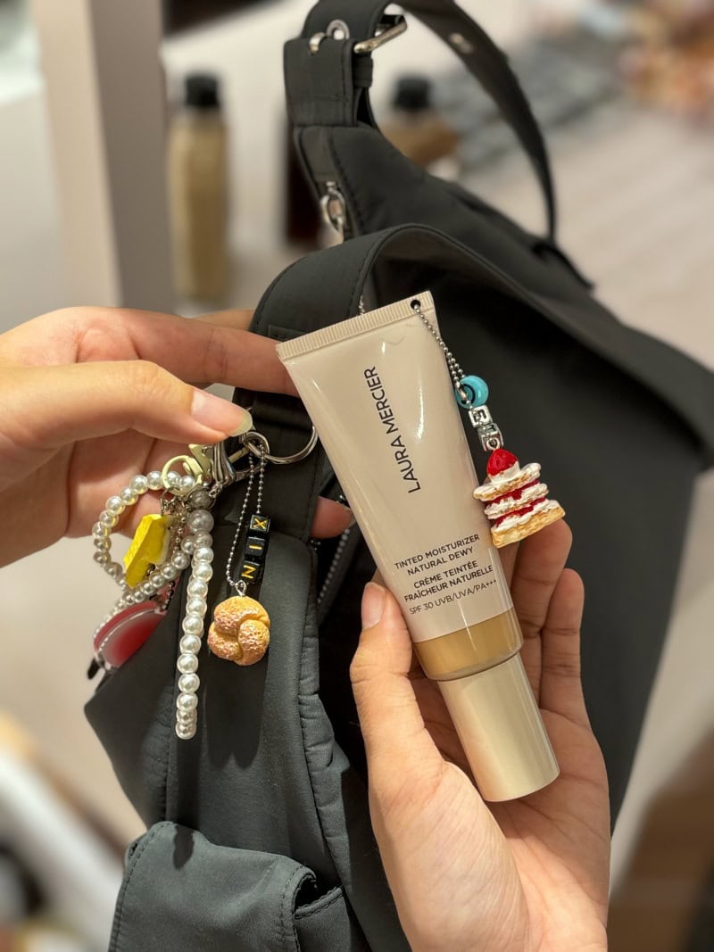 Choose one big charm and a maximum of three small charms to make your keychain. Then, the staff will help you punch a hole and attach the keychain to your moisturiser.