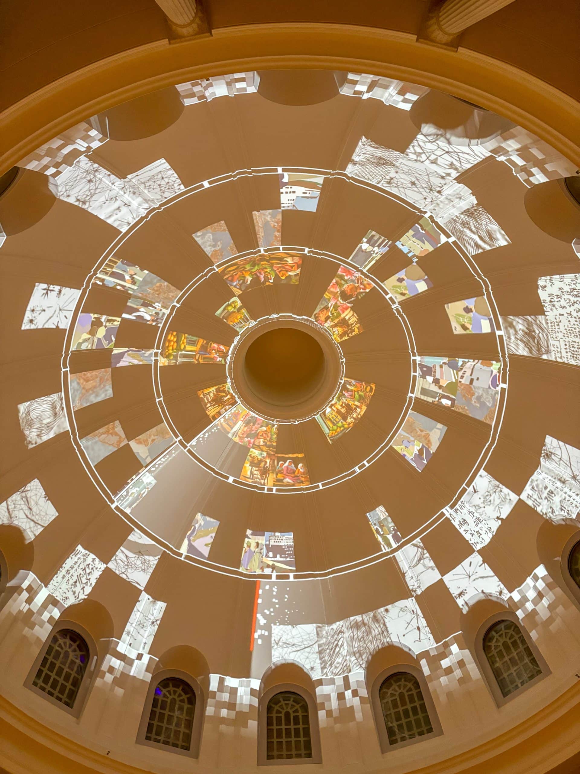 kālacakra by Kapilan Nadu invites you to participate in a quiz to generate a unique artwork drawn from the Gallery’s archives. The coolest part is that your piece will be added to the dazzling projection on the screen!