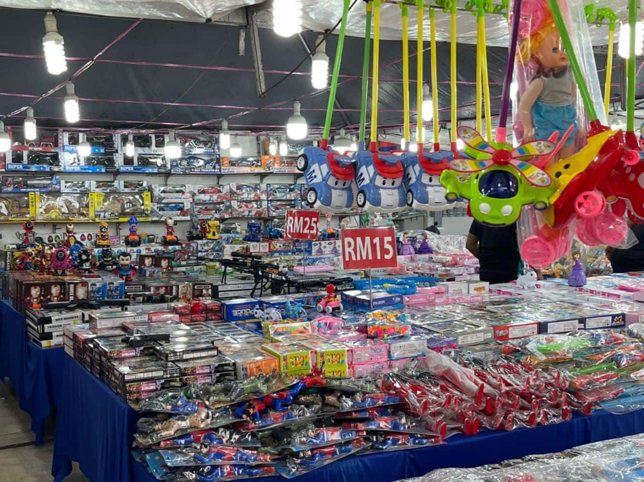 There are plenty of toys to buy and games to play like the inflatable bouncy castles, kiddy car rides, fishing, and art jamming.