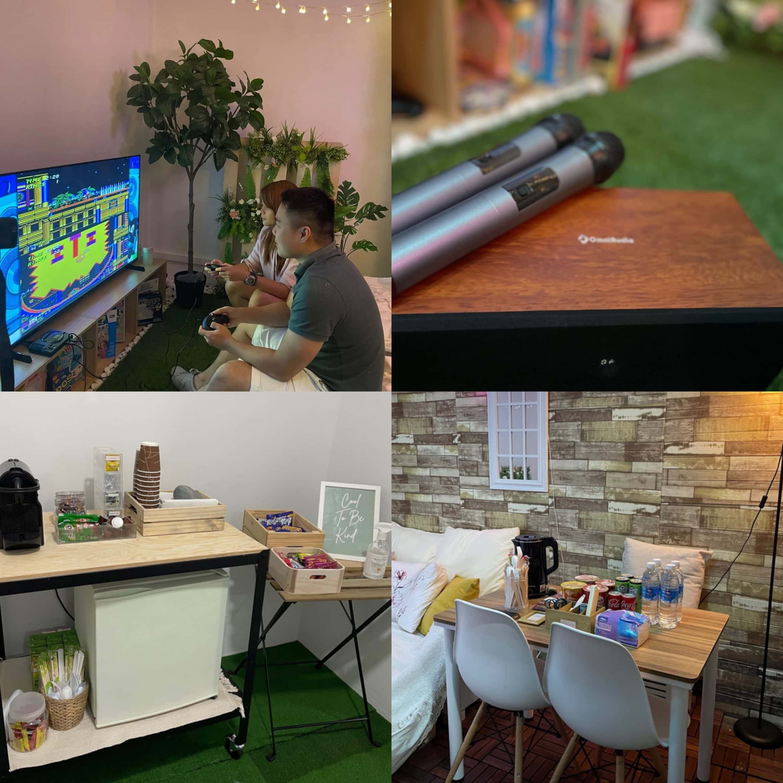 It also comes with complimentary premium drinks, (including instant noodles and light bites for the S$128 package), a ring light tripod, and even a mini birthday set-up. There are also no additional headcount charges, but the Lodge Cabin can only fit up to a maximum of 8 pax.