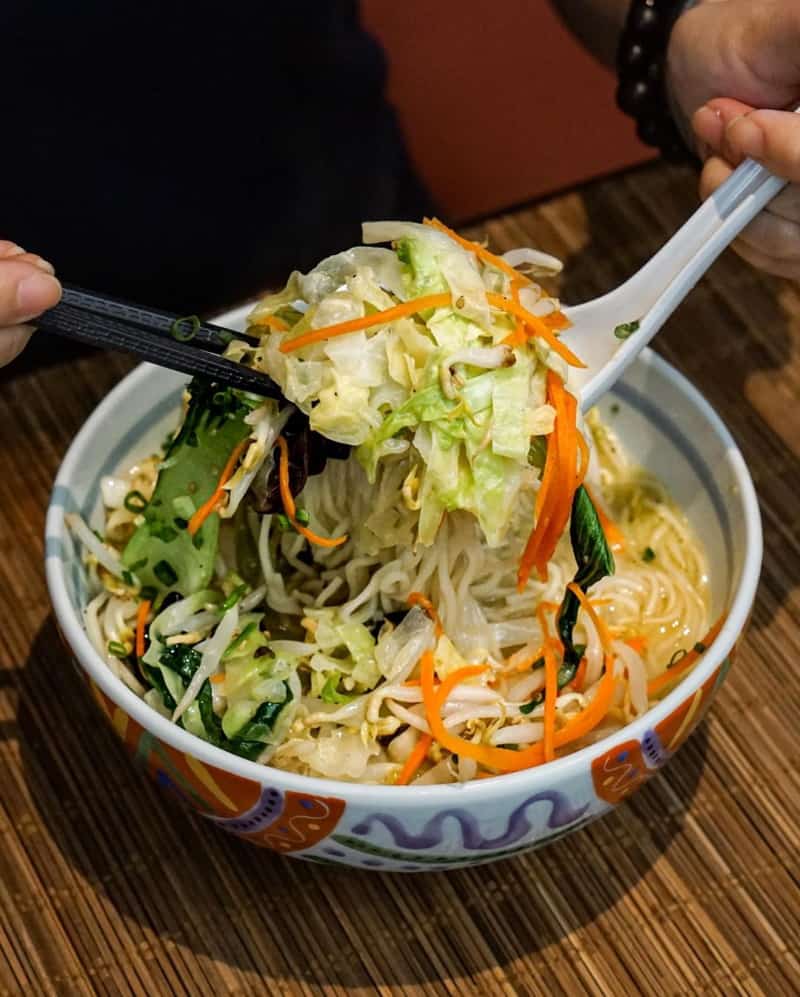 This version comes with the same light but hearty Chicken Paitan broth, but topped with a generous heap of vegetables.