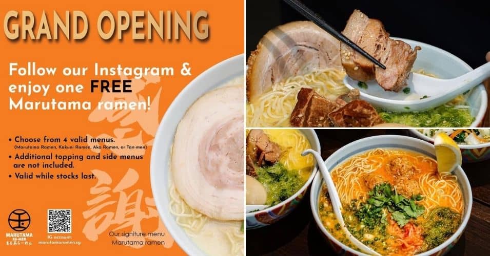 The free ramen promo is only available at Marutama Ramen Bugis+. It runs until 16 April 2021.
