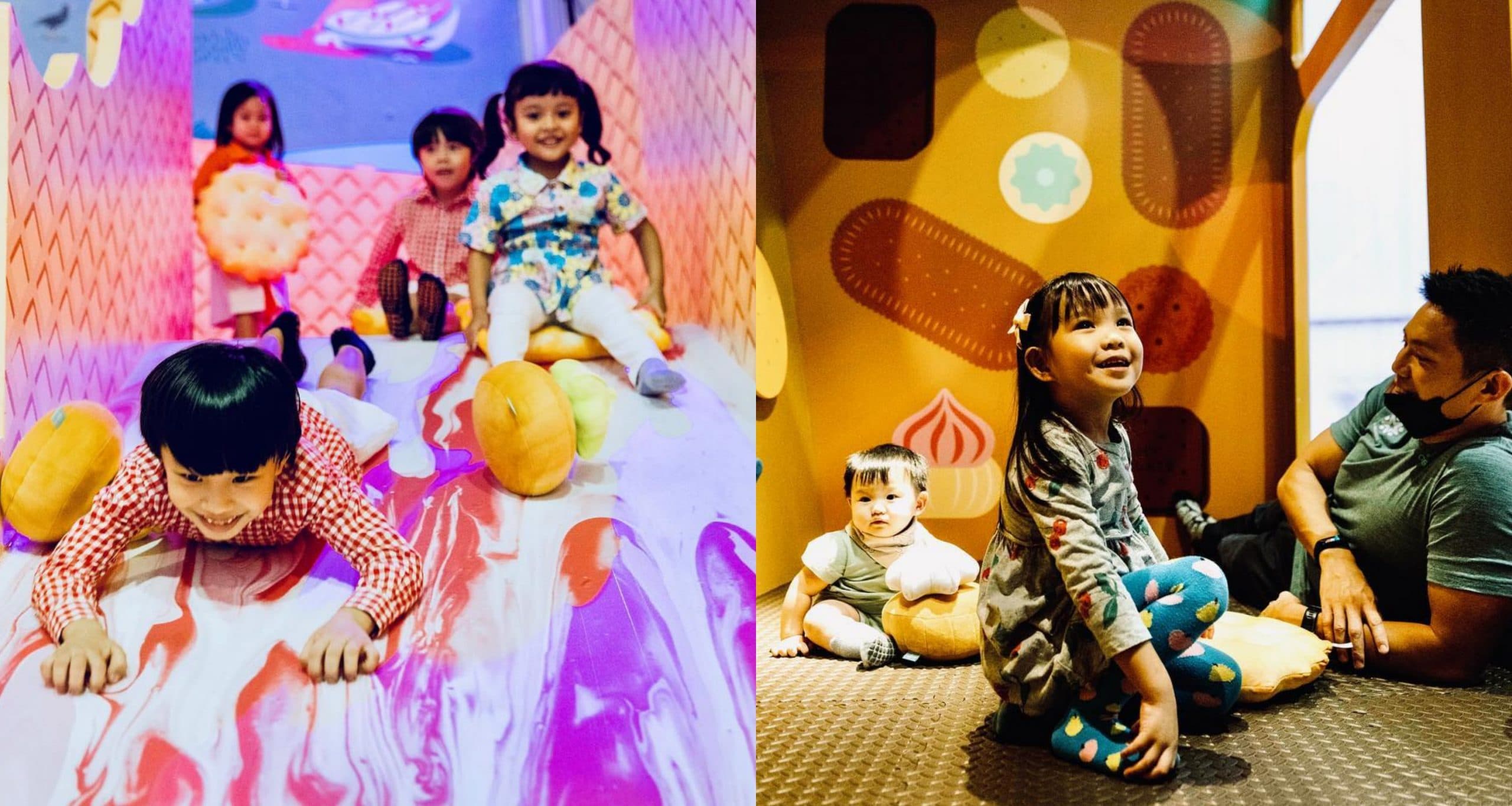 Playing with food is highly encouraged in the messy, larger-than-life om-nom-nomiverse of Masak Masak, where kids can climb on a spilled bowl of chendol, hop on an egg tart trampoline, or slide down a waffle covered in melted ice cream, and many more!
