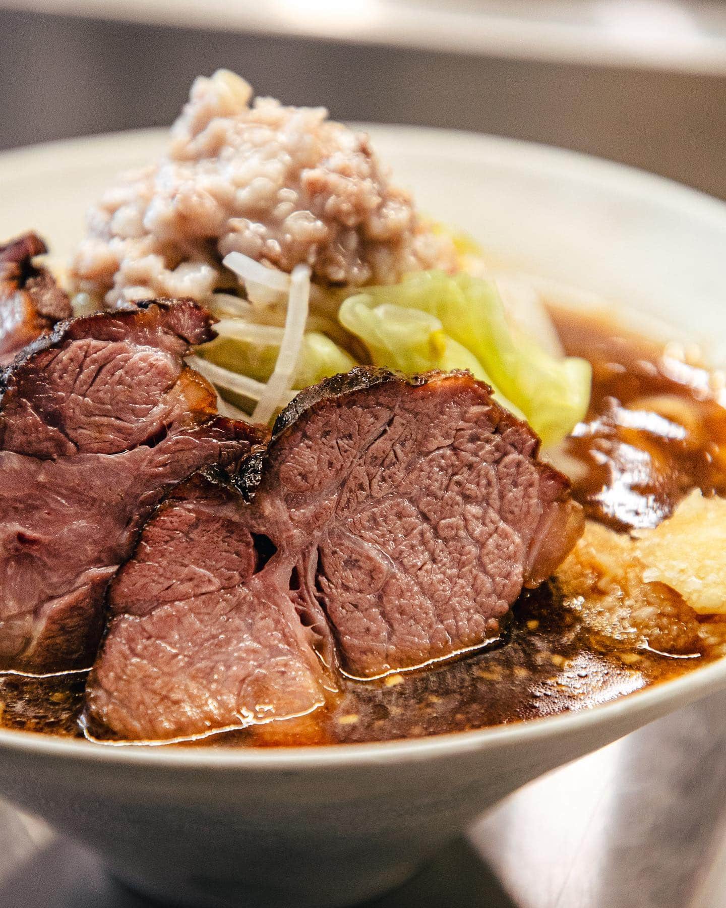 There are also housemade noodles, thick-cut wagyu chashu, wagyu fat, and a literal mountain of cabbage, beansprouts, and raw garlic. It’s as indulgent (and daunting) as it sounds.