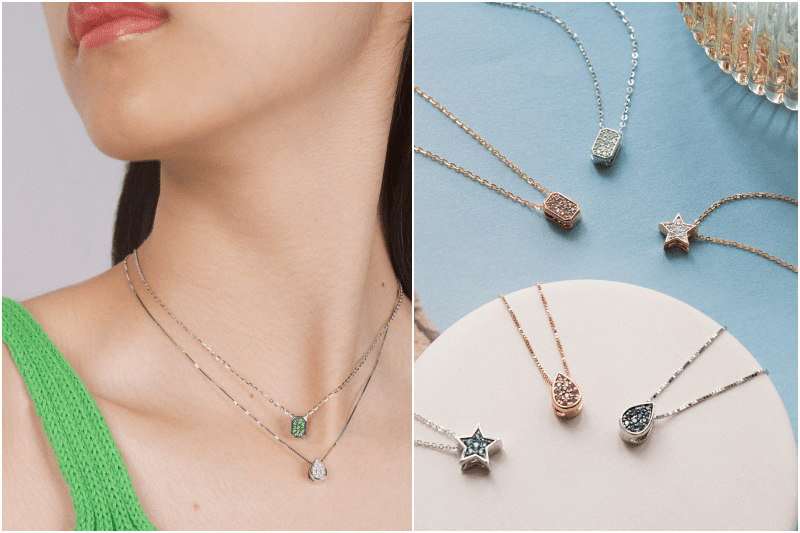 For those who love a pop of colour and quirky pieces, you can also consider these dual-sided necklaces featuring diamonds and coloured gemstones on the reverse. Time to ditch the norm and up your game by donning the colours!