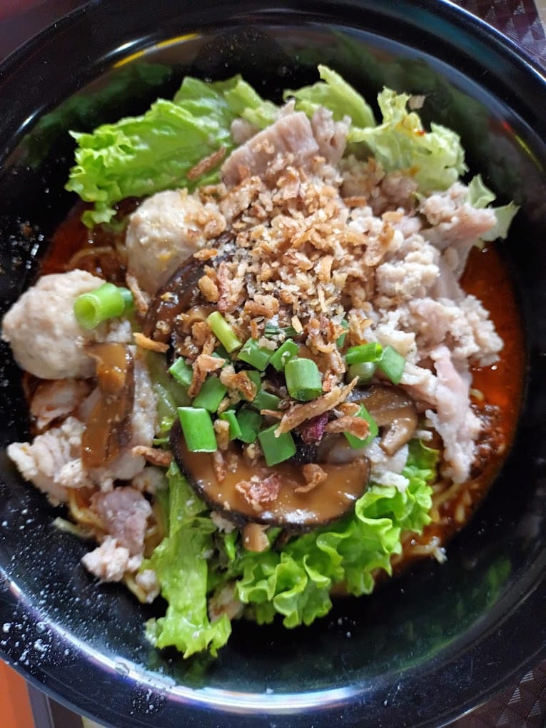 Every noodle dish is cooked till al dente, tossed in a sauce comprising vinegar, ketchup, chilli, and pork lard, topped off with braised mushrooms and green onions (yums).