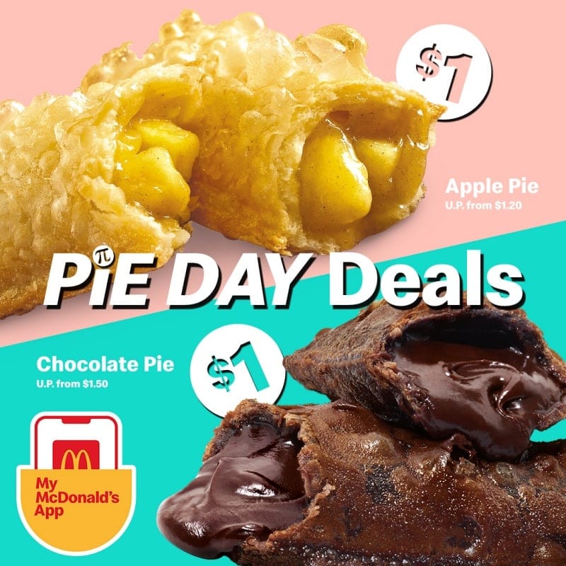 Celebrate Pie Day with this sweet deal. From 12 to 14 March, get the Chocolate and Apple Pie at S$1 each, exclusive to orders made at Dessert Kiosks, Drive Thrus, and through the My McDonald’s App.
