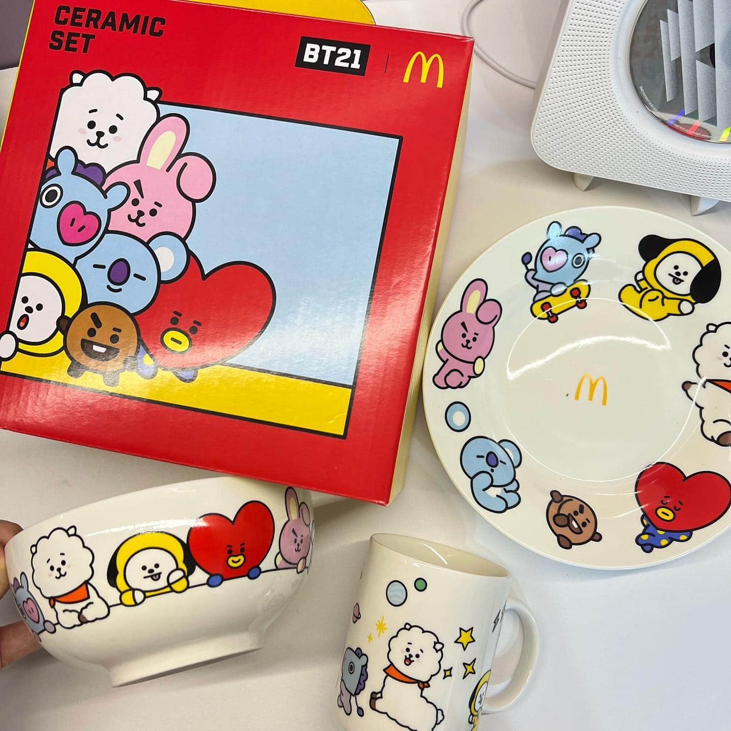 A special surprise in the form of a limited-edition BT21 ceramic set, consisting of a bowl, plate, and mug decorated with the iconic characters, was then released a week later.