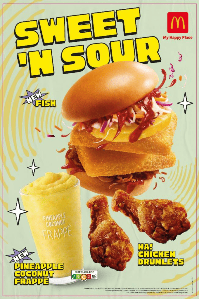 Once again, the all-new McDonald’s sweet and sour burgers, Ha! Chicken Drumlets, and Pineapple Coconut Frappé will be available from 28 December at McDonald’s outlets islandwide. Remember to save the date if you wanna be the first in line!