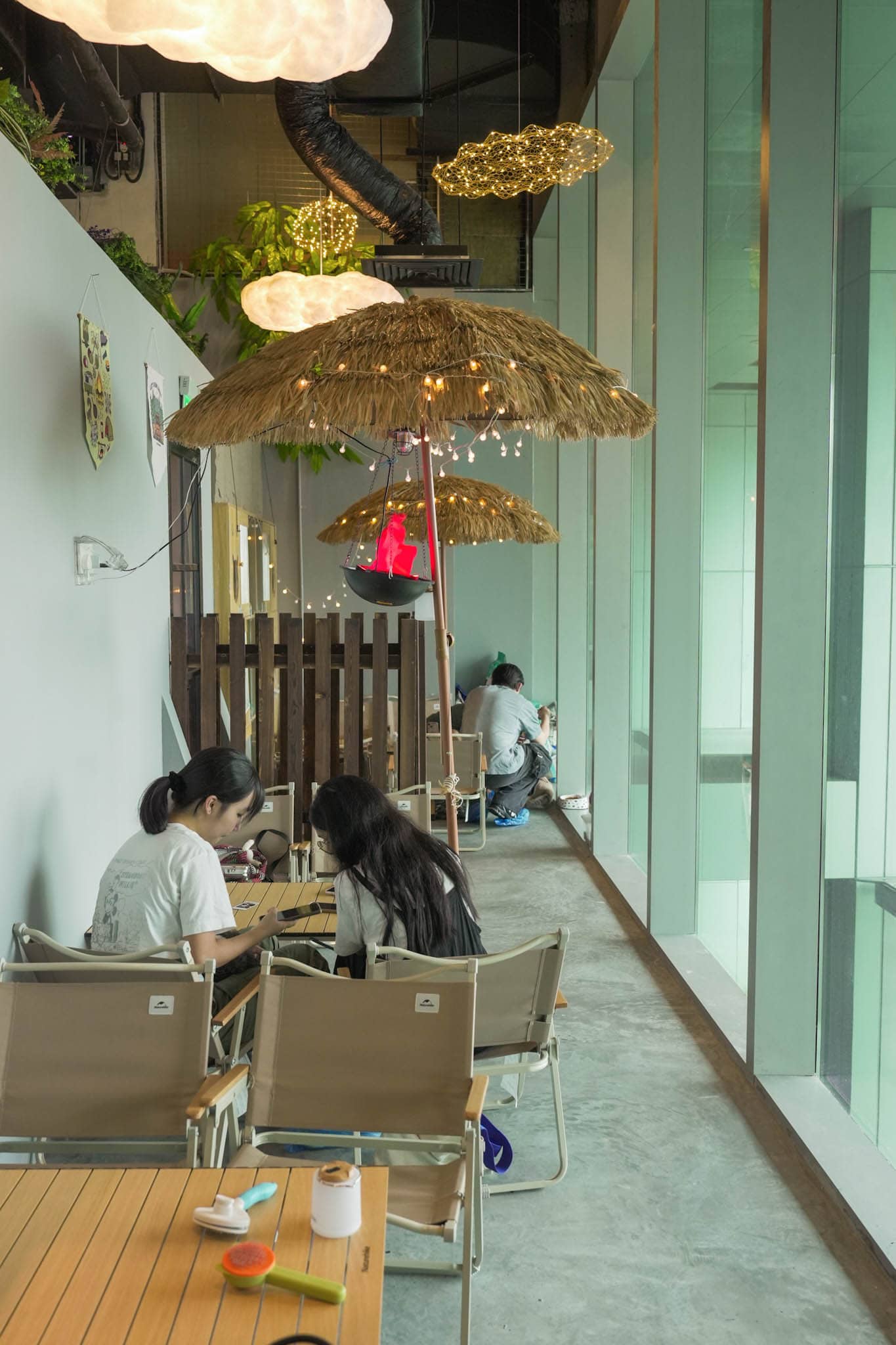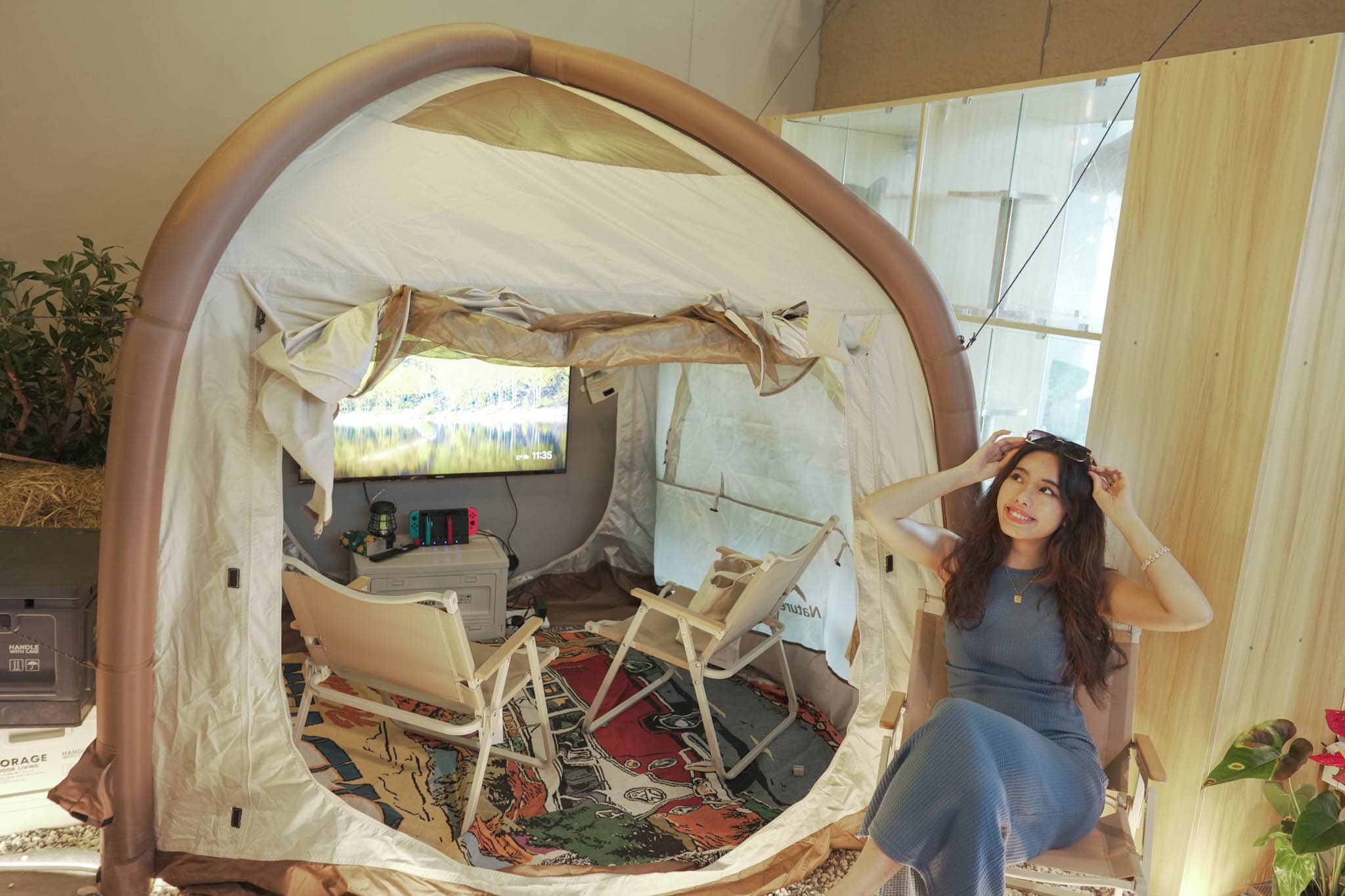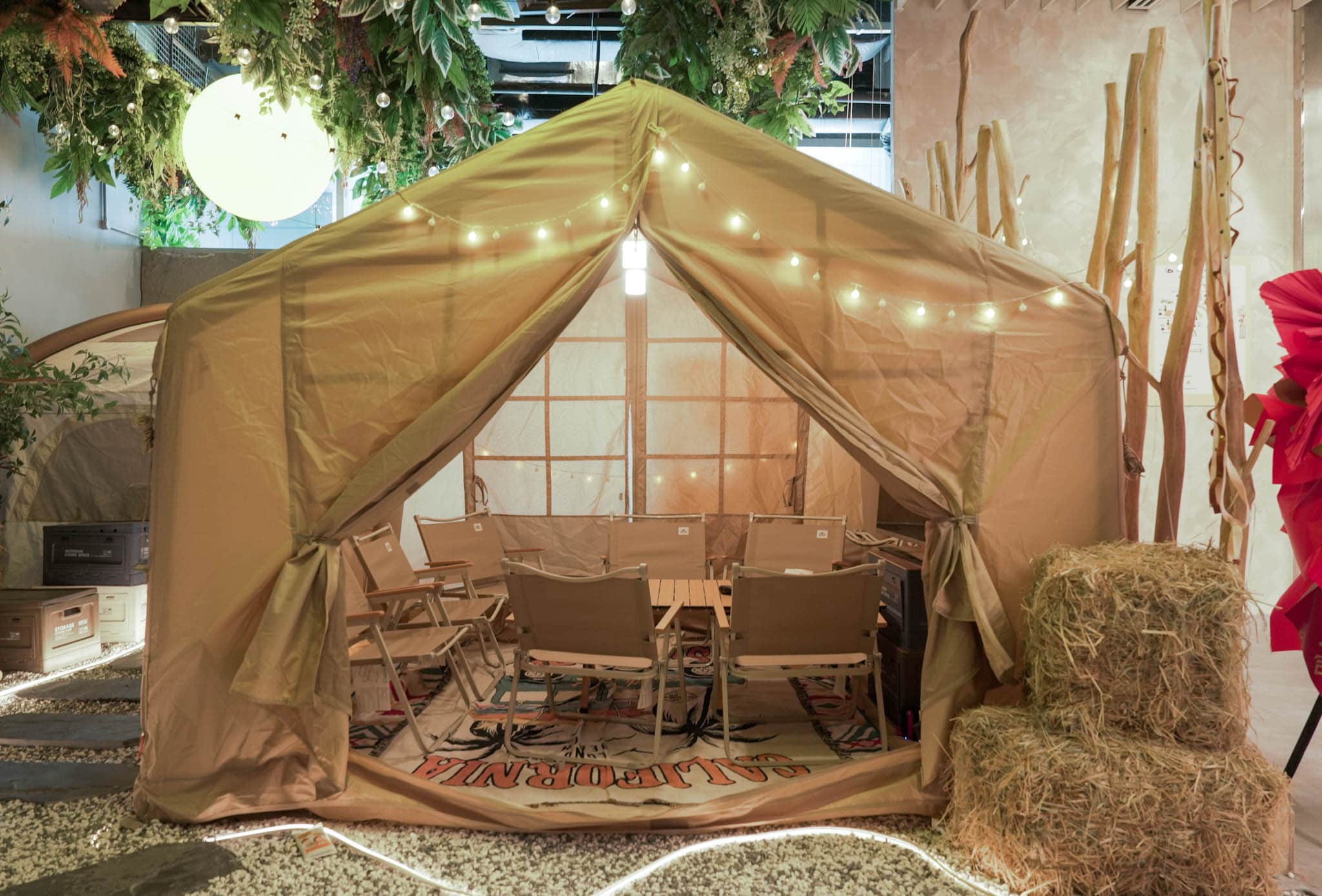 The new indoor game cafe sports a glamping theme complete with tents and fairy lights. There are even fake shrubs and a “moon” light hanging from the ceiling to simulate the vibes of an actual glamping experience.