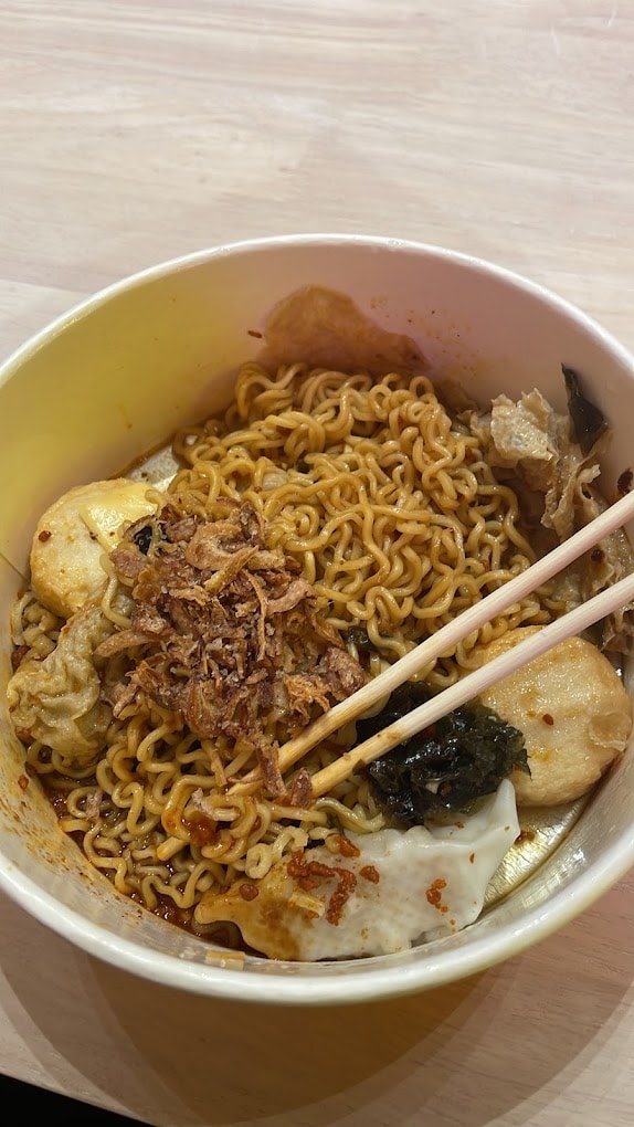 You’ll then be handed paper containers and cutlery after making payment; you’ll notice that the containers are even equipped with special “holes” in the lid for draining water (in the preparation of dry noodles).