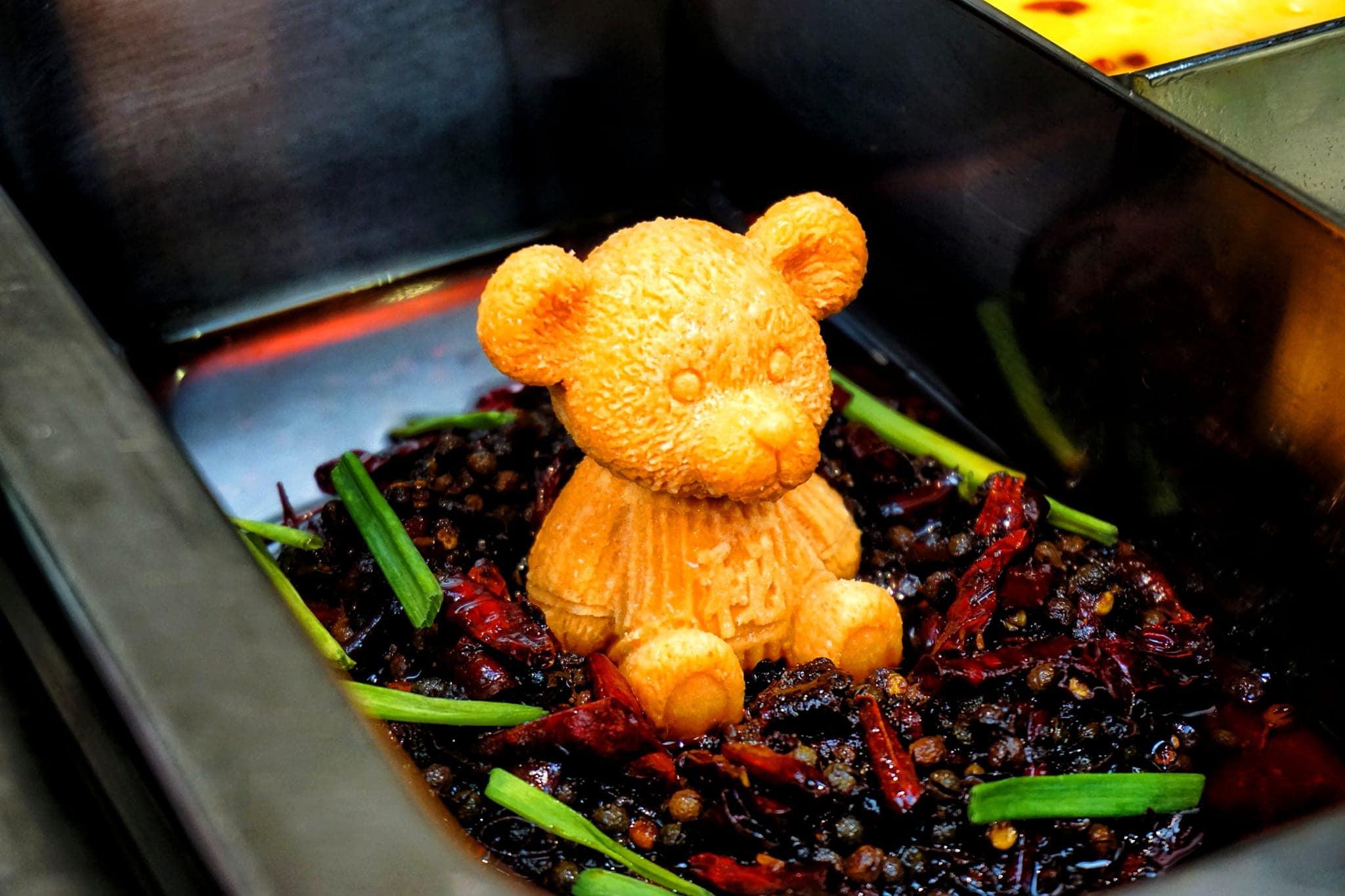 Is your dining partner not in the mood for a lala hotpot? No worries! There are other soup bases as well, such as Tomato, Collagen, and Mala. In fact, their mala broth comes in the form of a cute teddy bear, which sits on a ladle contentedly as you dig into your meal.