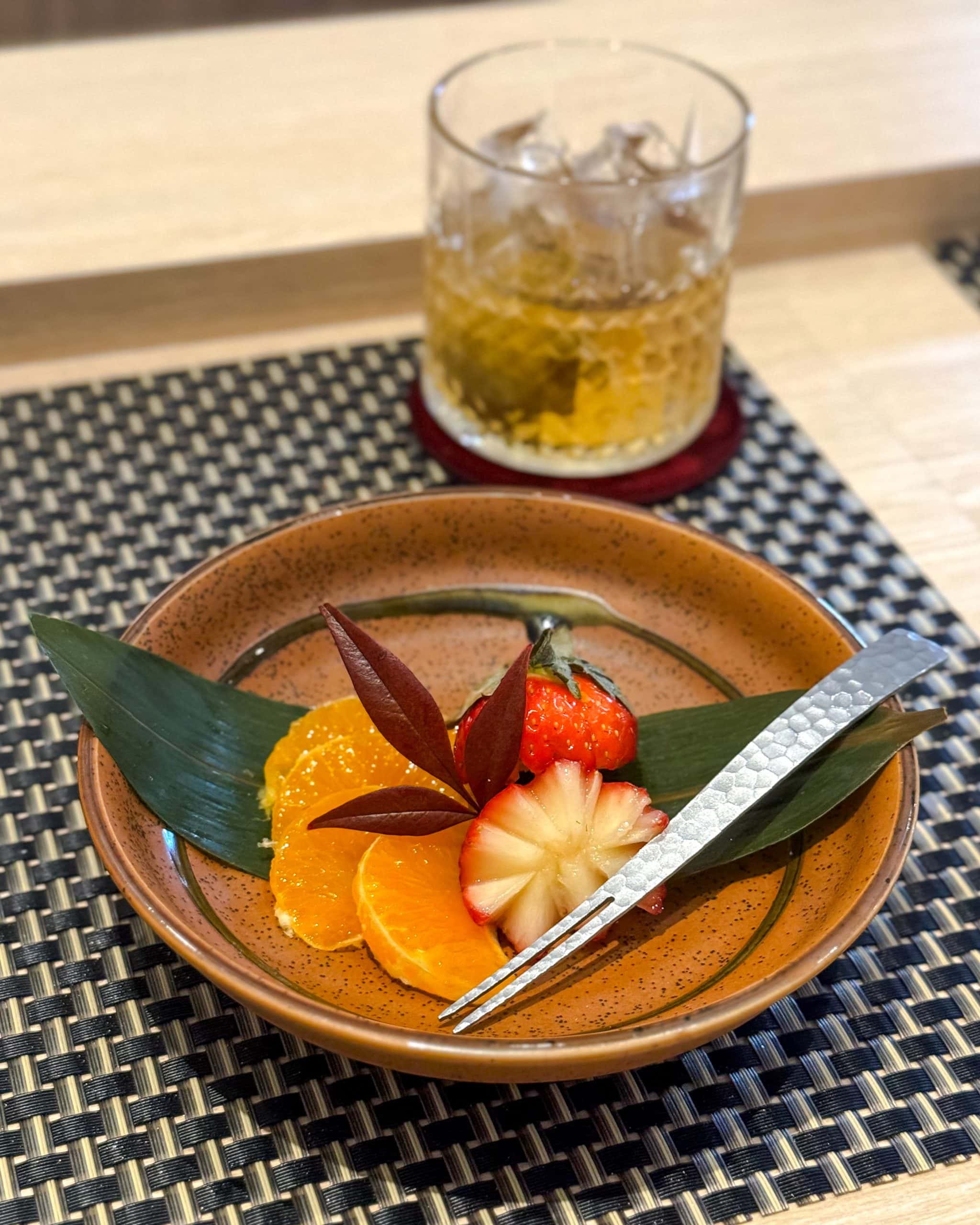 Finally, it was time to wind down with a comforting soup of maitake mushrooms, and lastly, a dessert of seasonal fruits.