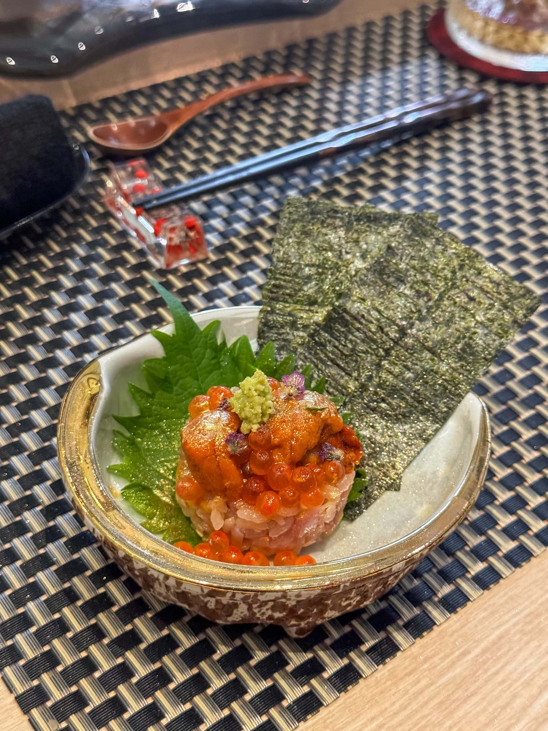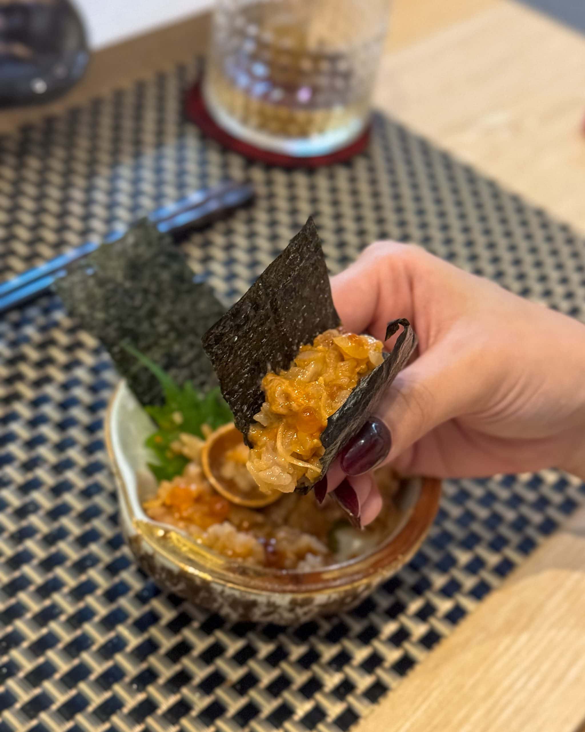 You’re meant to mix everything together and enjoy it wrapped in seaweed, so get ready for an explosion of flavour.