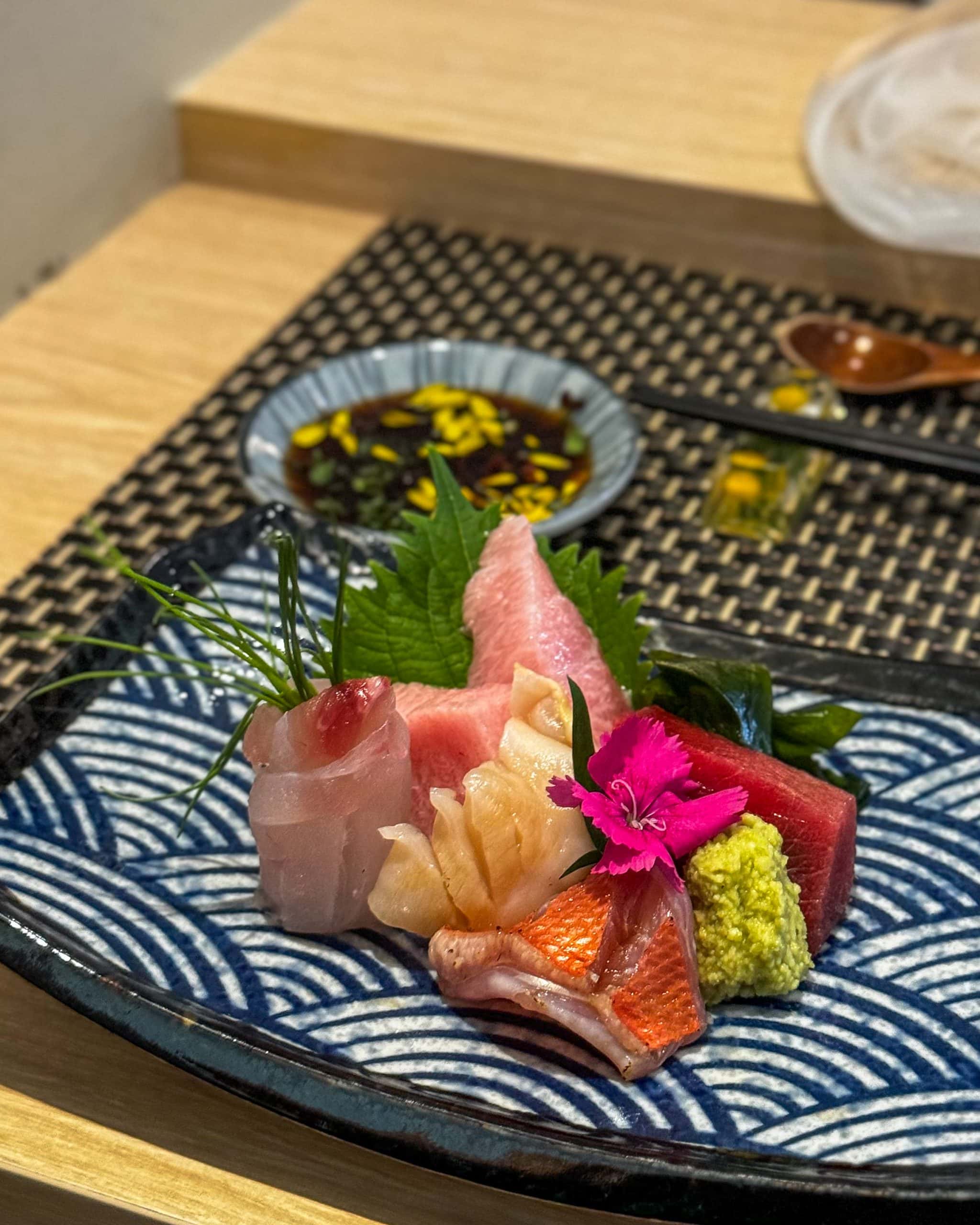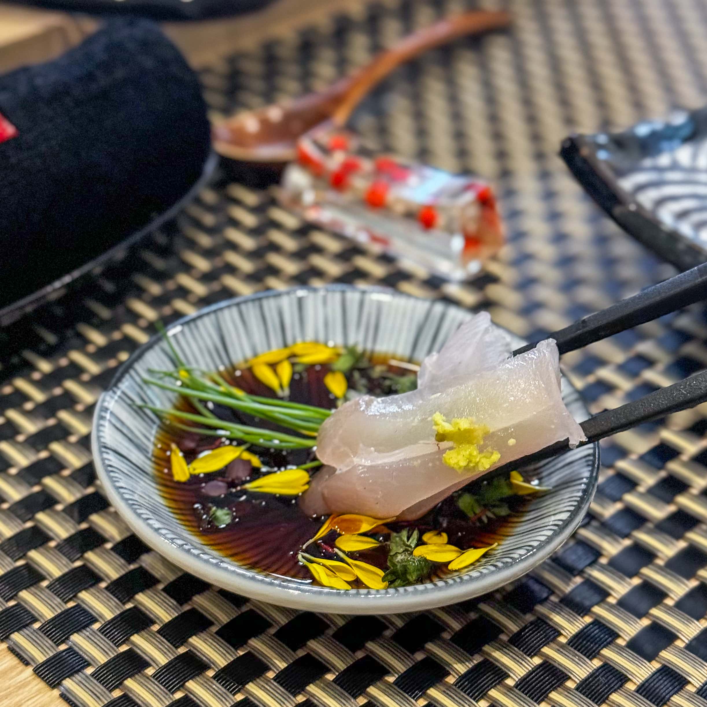 Oh, and I’ve got to give the unique soy sauce, which was served with fragrant flower petals, herbs, and leaves, a special shoutout.