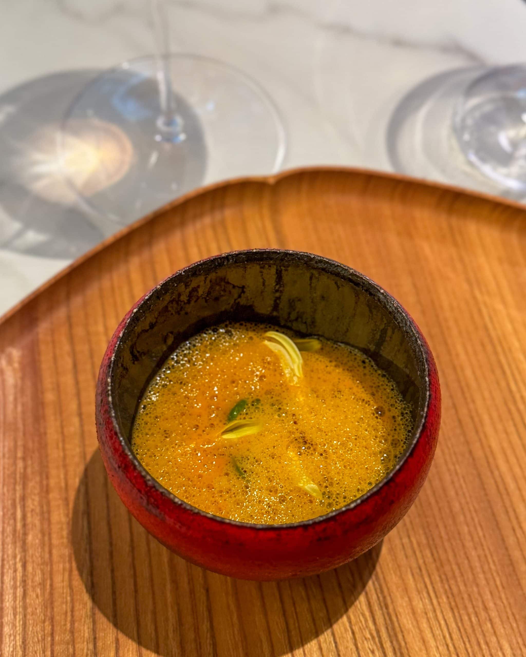 This was followed by a creamy, luscious Hyogo Oyster that’d been poached in an umami-rich kelp broth with camembert mousse, milk foam, and diced raw onions, brightened up by caviar and refreshing yuzu pearls. I don’t mean to be dramatic, but as a big oyster fan, this had me rolling my eyes to the back to my head. It was that good.