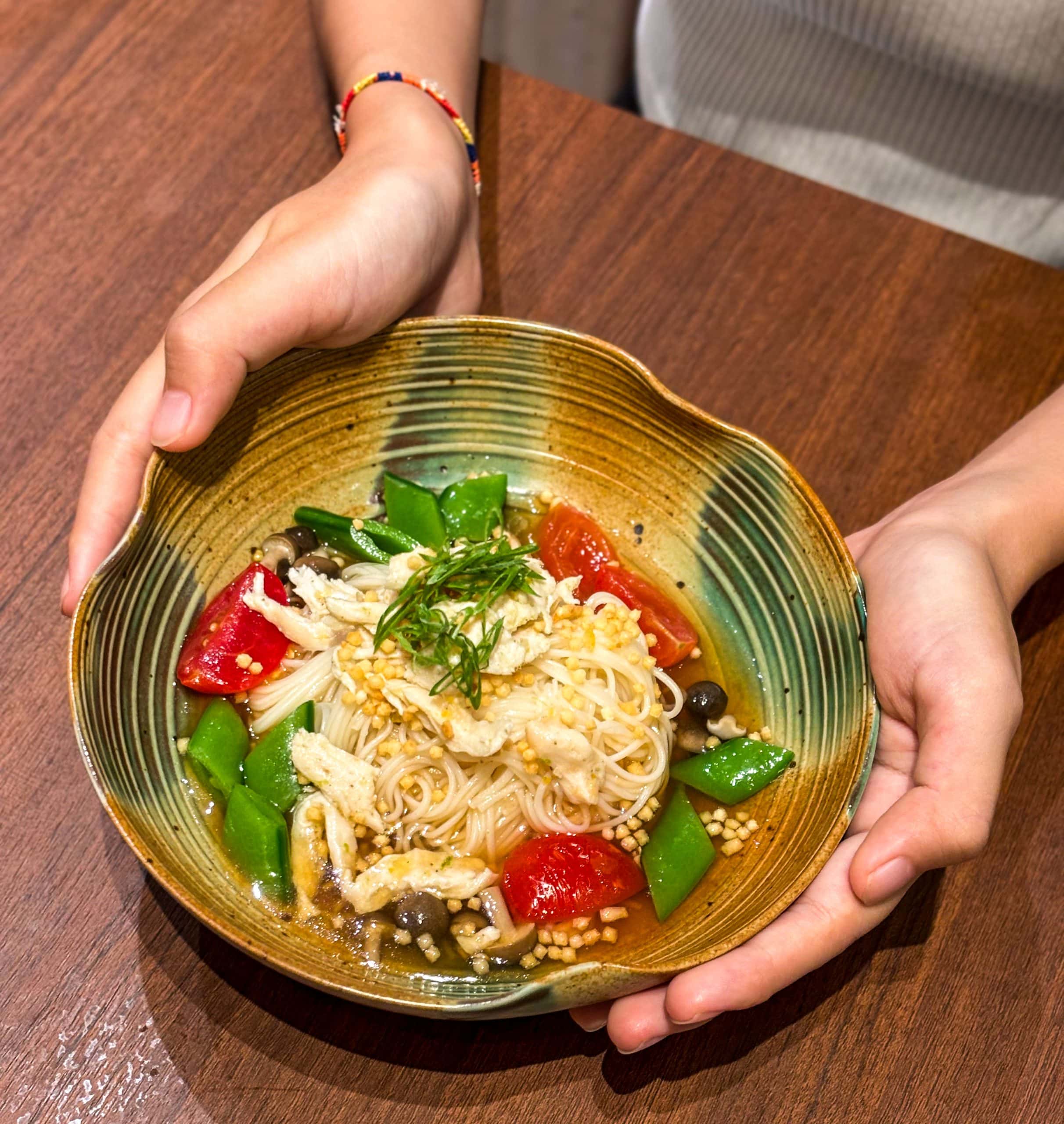 While we agreed that the cold noodles and light broth are great for cooling down on a hot day and cleansing your palate, the taste wasn’t too remarkable. The strongest flavours came from the tomato slices, which released their sweet-sourness.