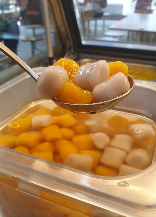 You can DIY your own dessert by choosing a base (from S$1.50), followed by toppings from the selection in the glass display, which include the likes of chewy Sweet Potato Ball, Lychee Pop (popping boba), Aiyu Jelly (in fun flavours like Wintermelon, Passionfruit, and Lemon), Coffee Jelly, and Tangyuan (glutinous rice balls).