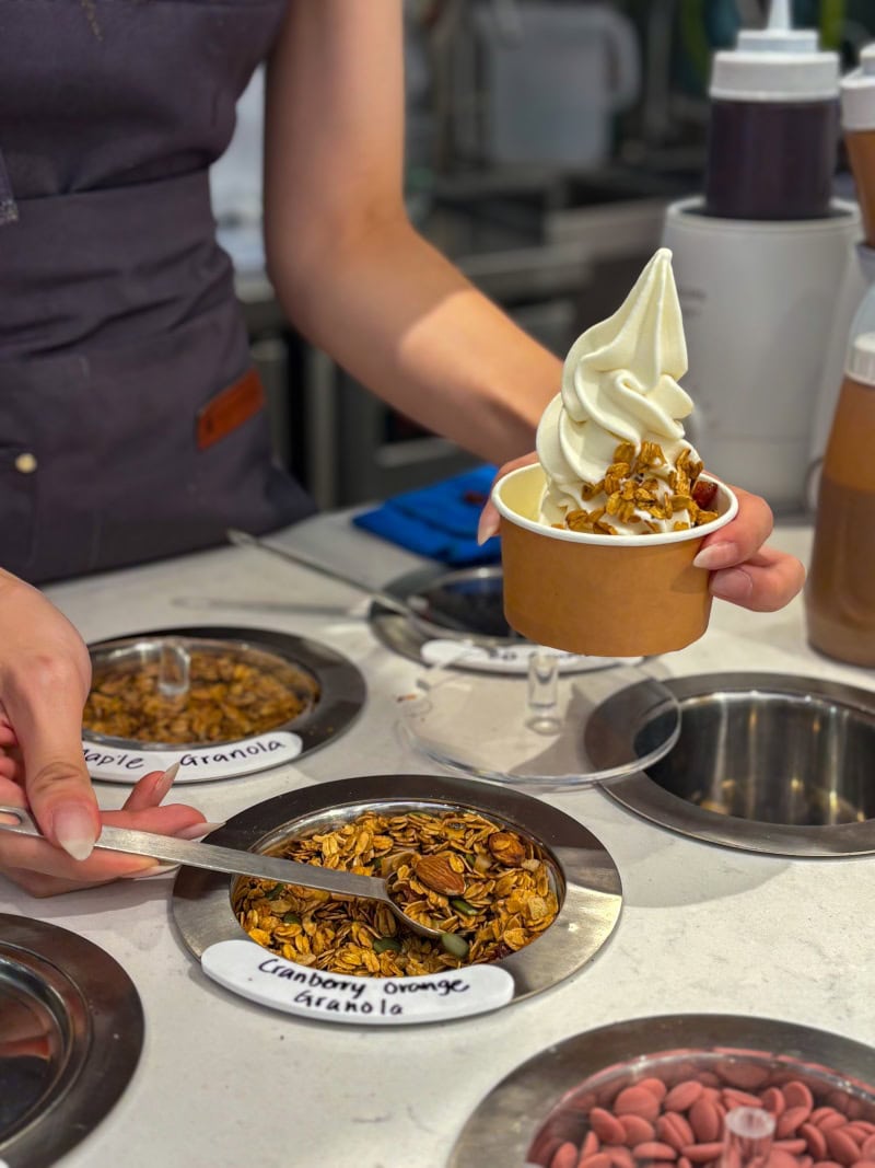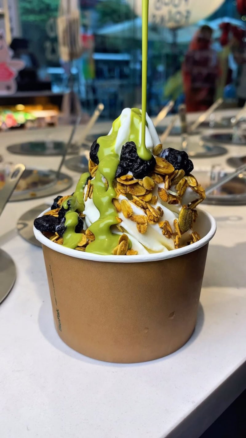 You can choose between a cup or a sundae form like your favorite yogurt joints.