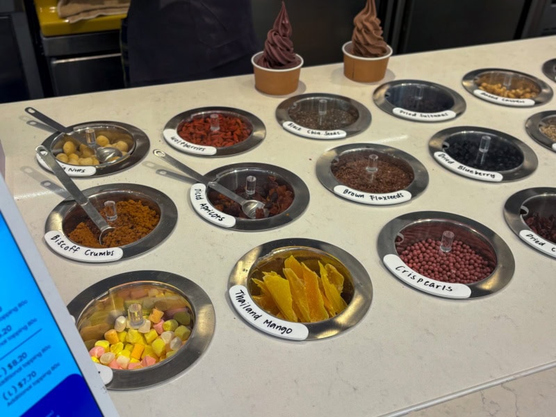 But the real fun starts with the wide array of toppings and drizzles to choose from.