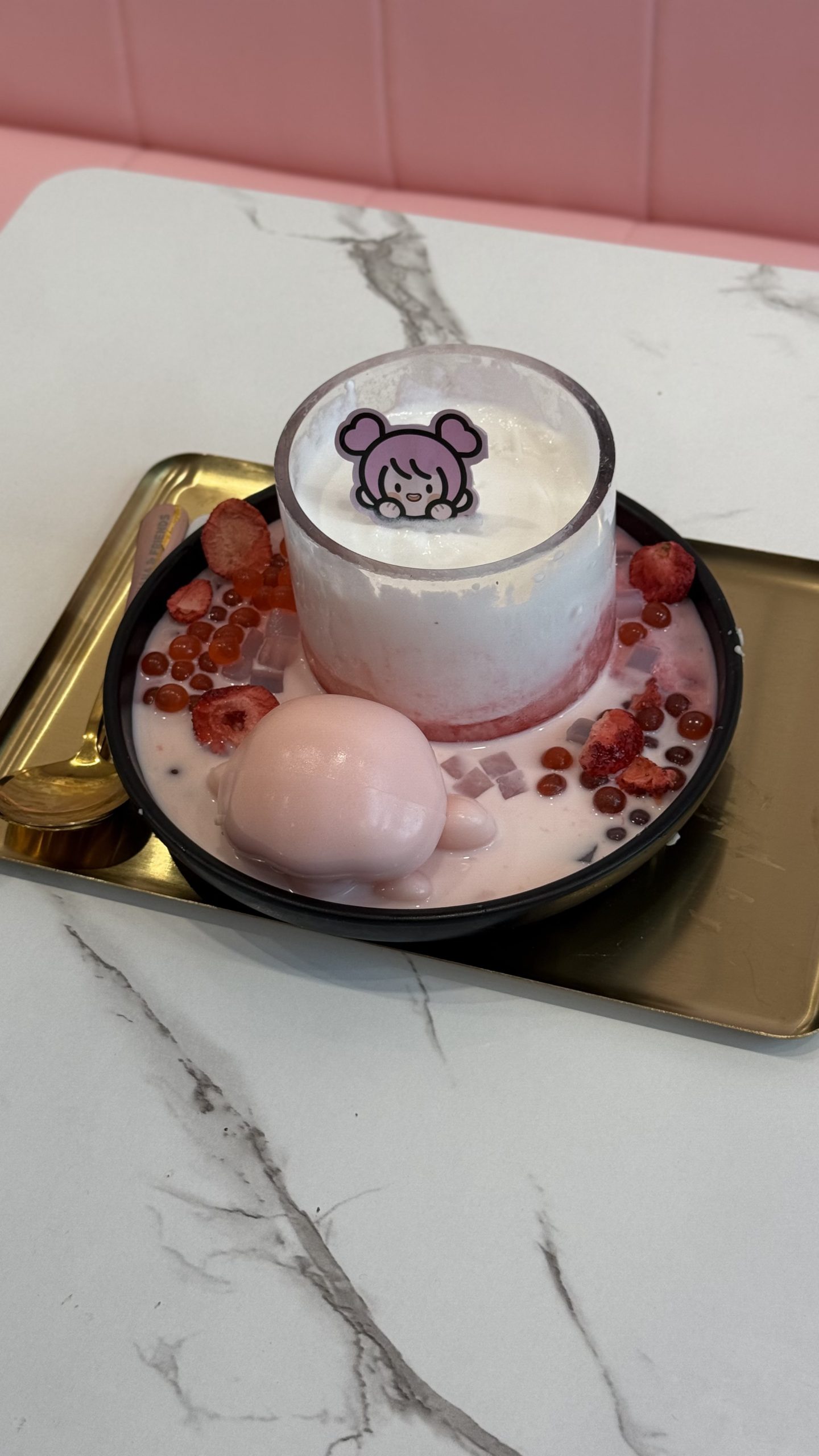Here’s how it works: simply choose your desired bingsu flavour (more on that in a bit!) at the ordering kiosk or counter. When your number is called, make your way to the giant vending machine and press the big, heart-shaped button. Voila! Out comes your bingsu and a surprise plushie to sweeten the deal.