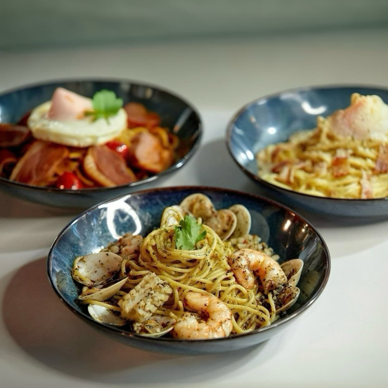 Less meaty but just as mighty is the customisable pasta with protein. Your pasta options range from Aglio Olio and Arrabiata to Creamy Pomodoro, Pesto, and more.
