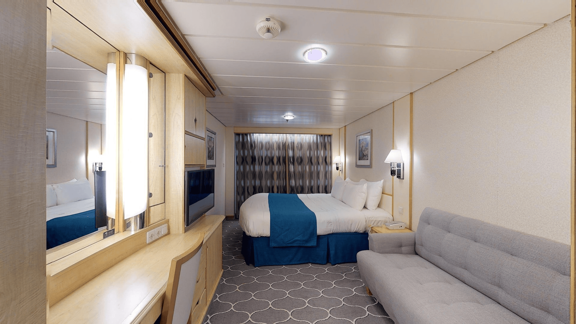 The most basic Interior Stateroom is around 340 square feet, offering a wide range of amenities for a family, accommodating up to six guests.
