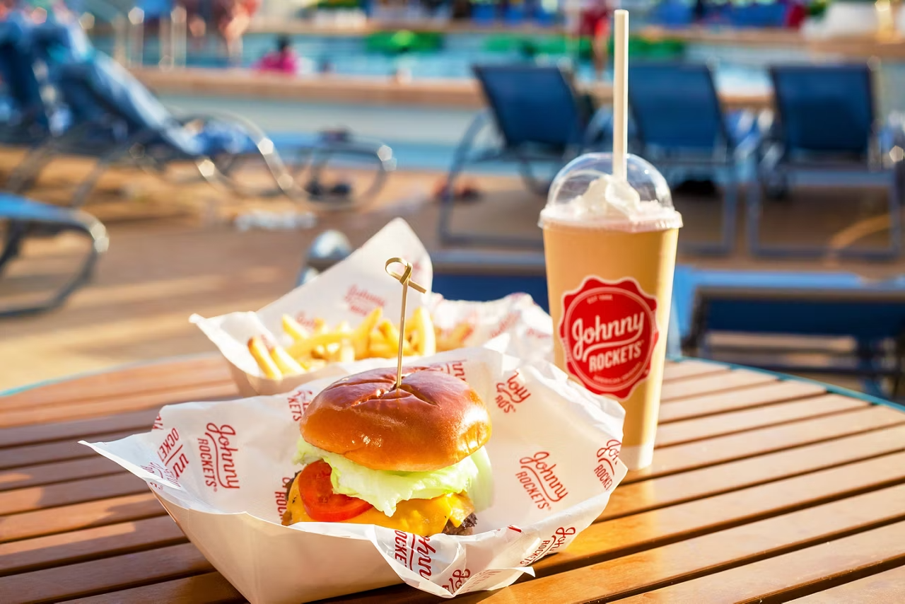 Or, snuff down Mexican favourites at El Loco Fresh by the pool, or classic American burgers and fries at Johnny Rockets Express.