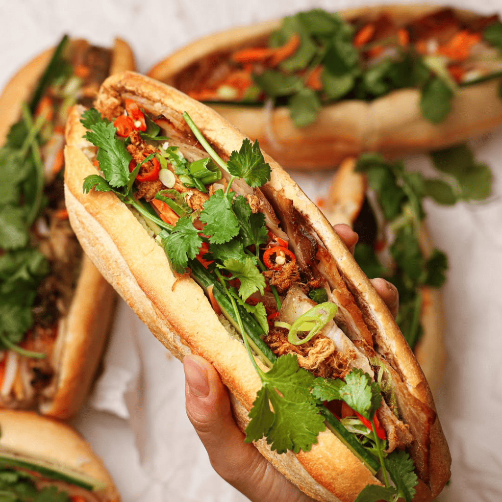 For something punchier, the Vietnamese Fried Chicken Banh Mi packs Southeast Asian-spiced chicken with tangy pickles and housemade sriracha mayo.