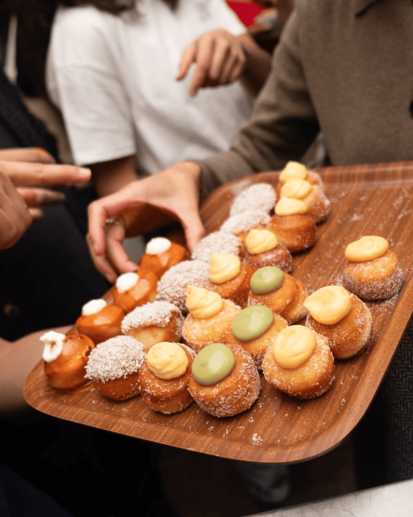 The lineup of Asian-style French pastries includes doughnuts and eclairs with inventive flavours at $4 each. The rotating menu includes the Kaya Donut, Chili Oil Chantilly Donut, Black Sesame Eclair, and a Tan Suan Eclair.