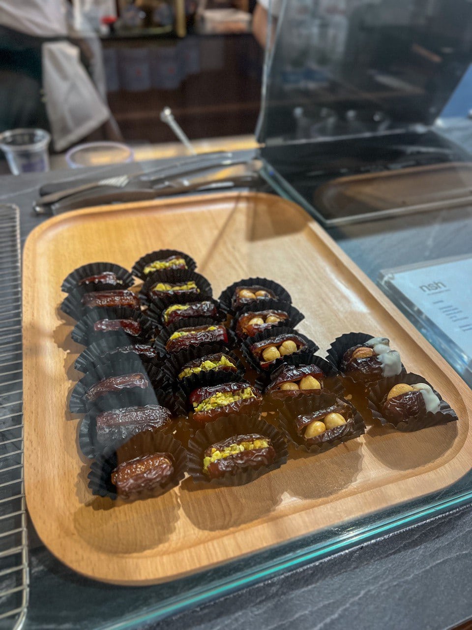 Another standout is their stuffed dates, a unique offering you won’t find in many other cafes. Here, regular dates are topped with ingredients like Pistachio, Candied Orange, and White Choco Cashew for added sweetness and crunch.