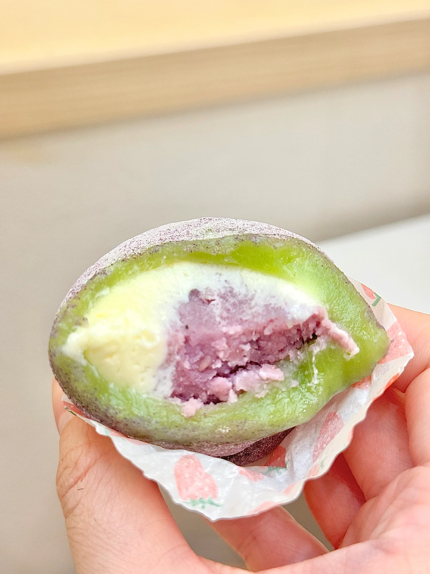 Taro paste is (of course) amongst the selection of fillings, along with red bean, shredded coconut, black sesame, biscoff, oreo and even fruits and ice cream. A popular combination that taro fans would go for is a pandan mochi skin filled with taro paste, cream cheese or vanilla ice cream and purple rice.