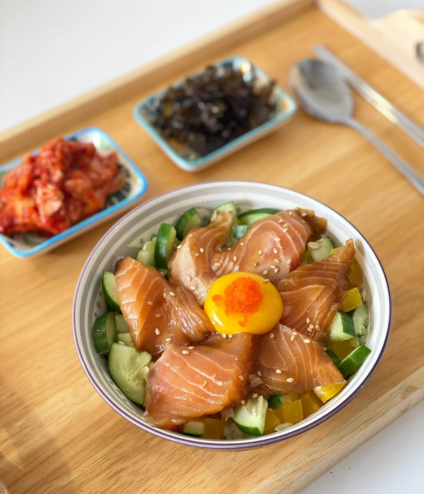 You can even find unique bibimbap options like the Yeoneo Deopbap (S$10.55/RM35), rice with salmon, cucumbers, fish roe, pickled radish, kimchi, and seaweed, topped with a raw egg yolk — it’s both tasty and easy on the eye.