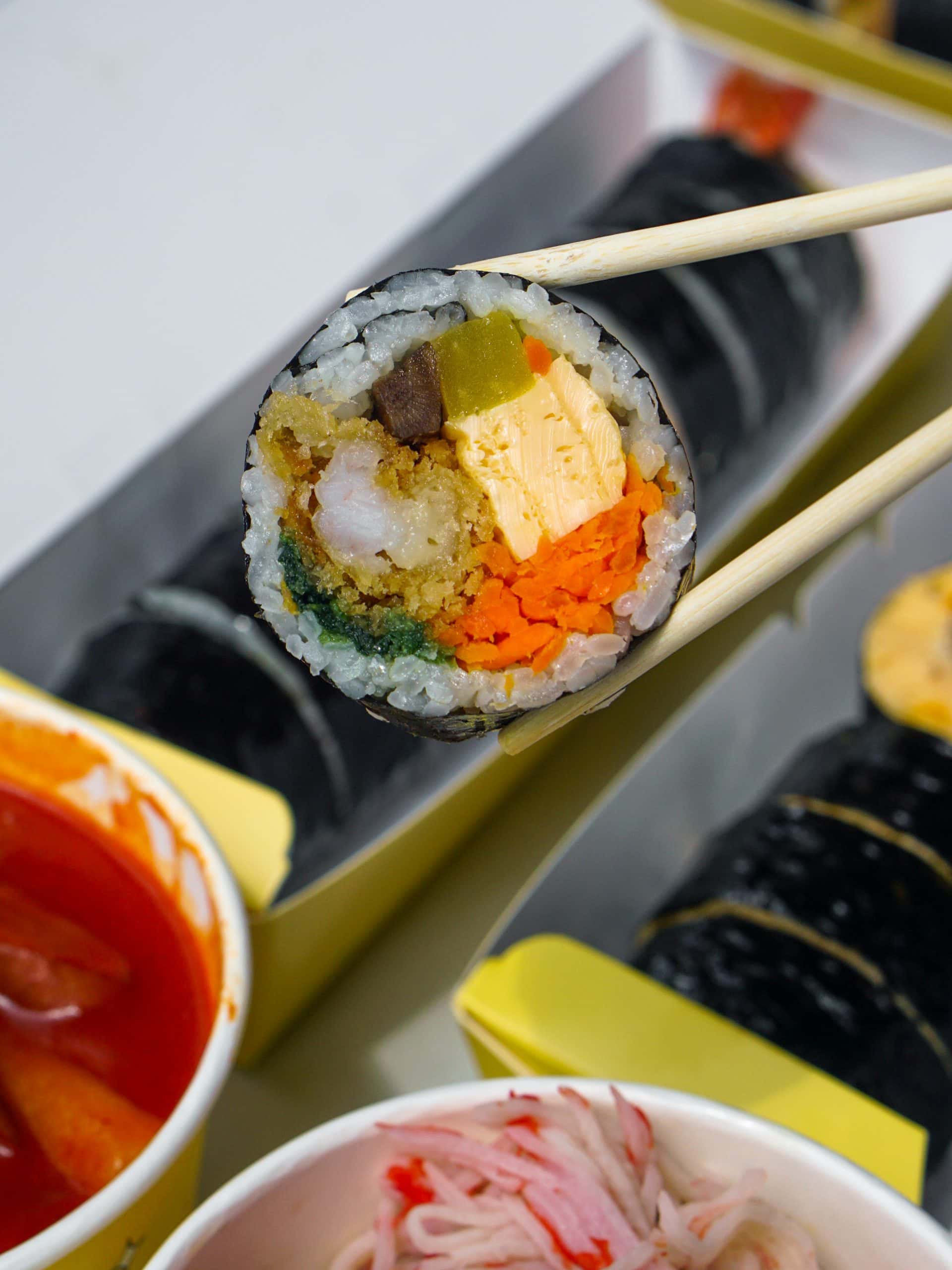 You can order kimbap, alongside a small selection of Korean street eats for dine-in from 11.30am–2.30pm on weekdays, but self-pick up and delivery are also available.