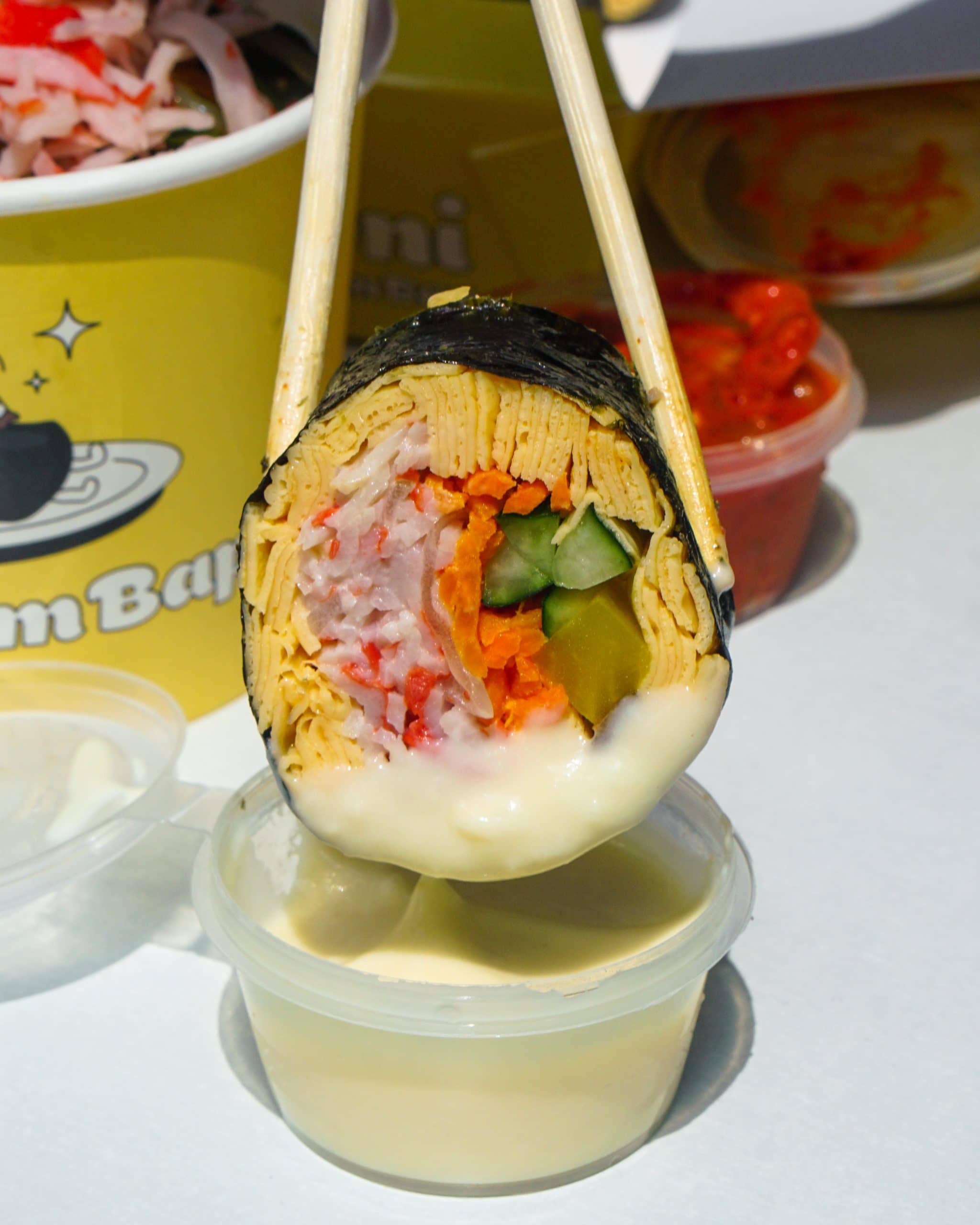 You can also pair the kimbap with your preferred accompaniment — choose from Stir Fried Kimchi, Sweet & Spicy Sauce, and the mildly sweet Garlic Mayo Sauce — all homemade. Impressive.