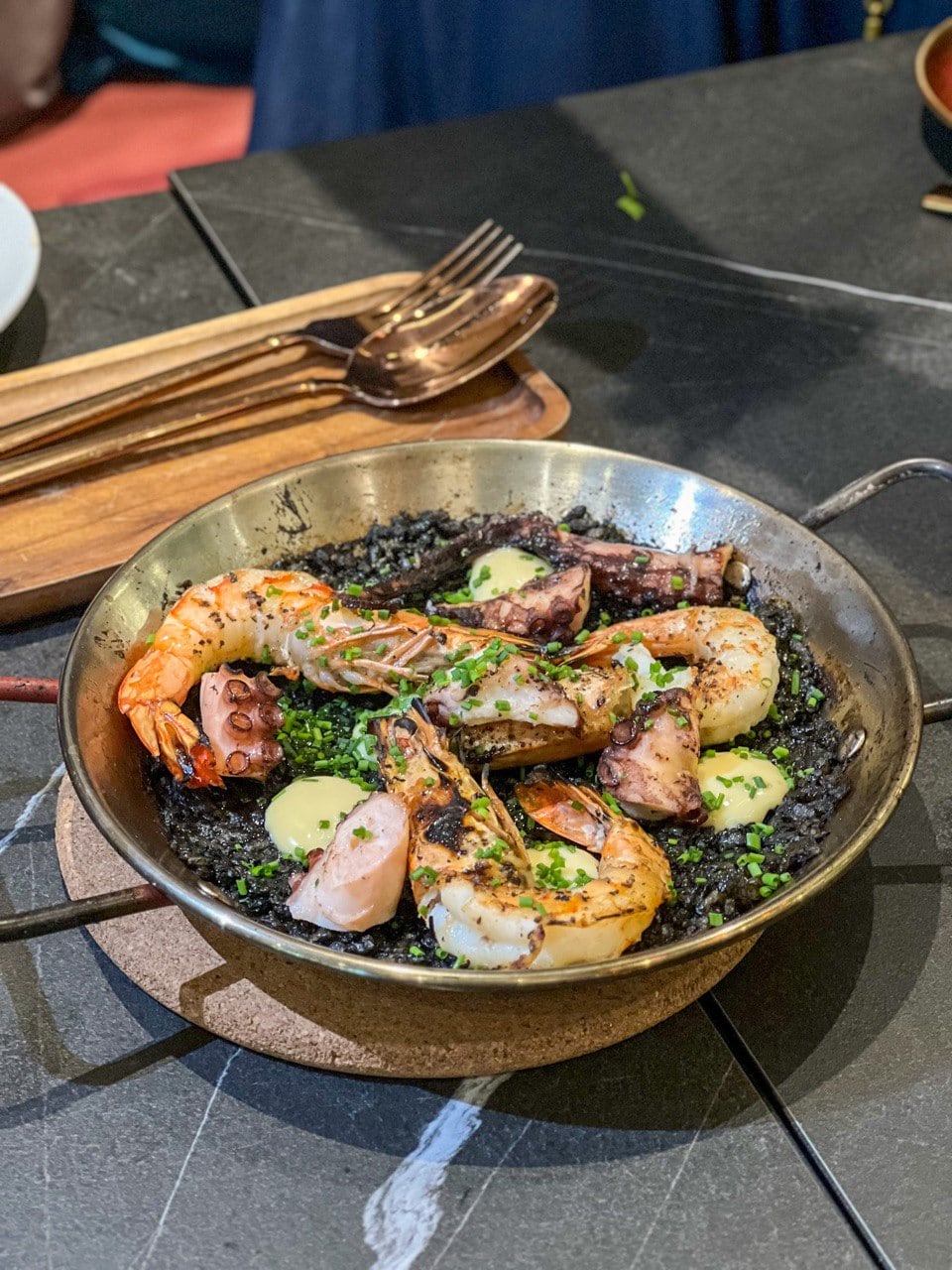 The Squid Ink Seafood Paella (S$48) should also be on your table, though I’d recommend enjoying it on its own as it leans toward the heavier side. With grilled rice topped with fire-roasted prawns and octopus, this dish is sure to satisfy your appetite.